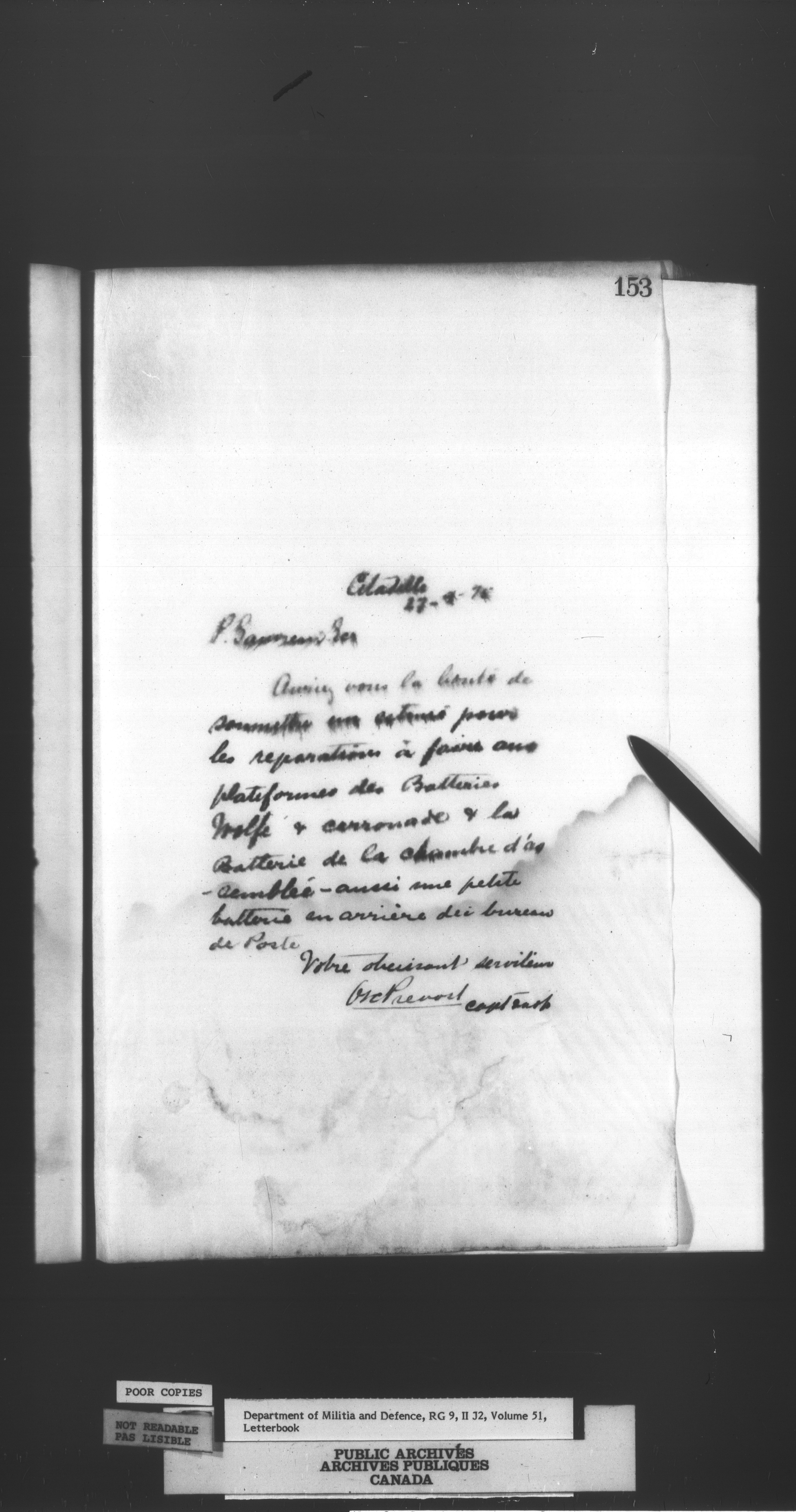 Militia and Defence : Records of artillery units at Quebec : T-475