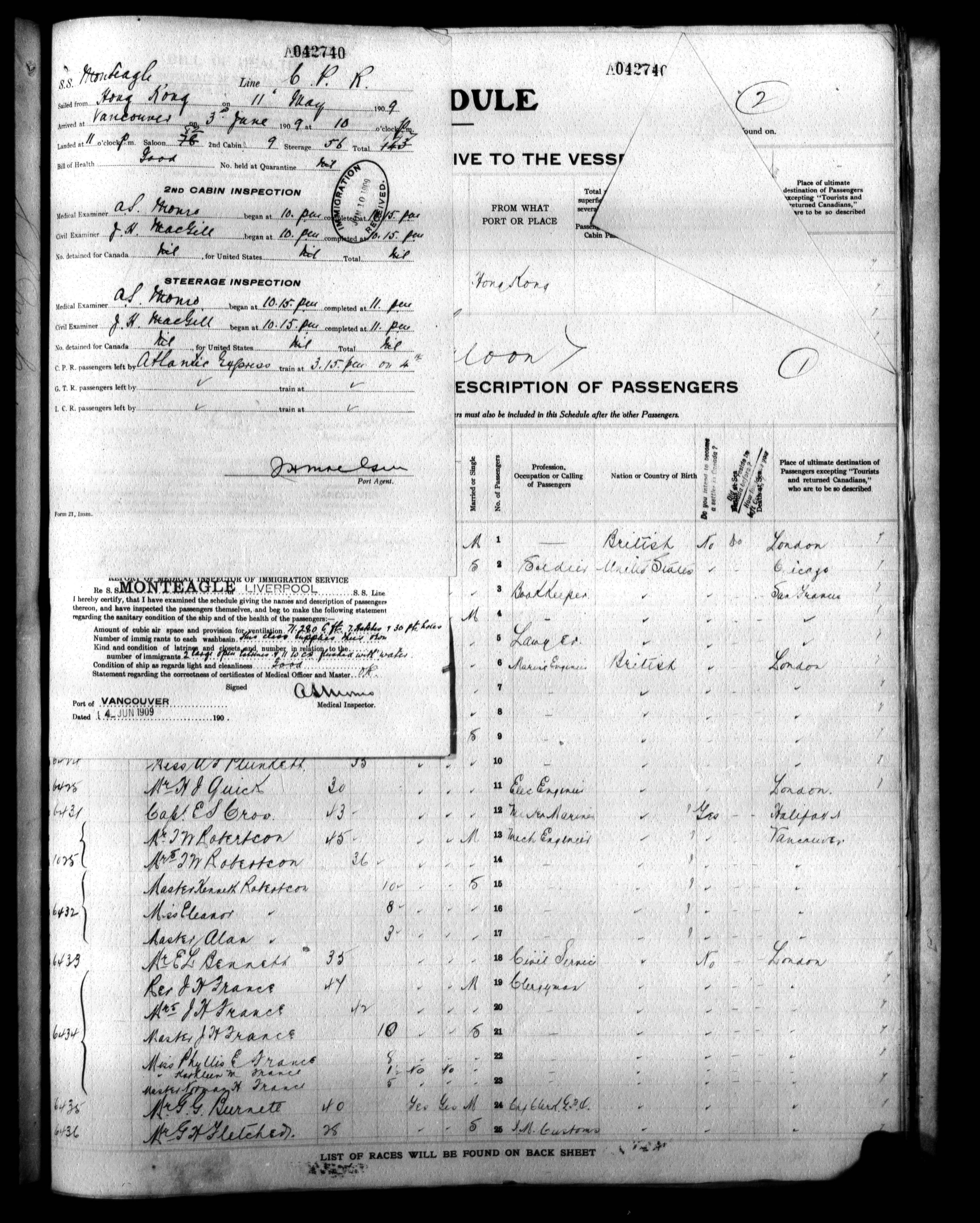 Vancouver ships' manifests - 4850