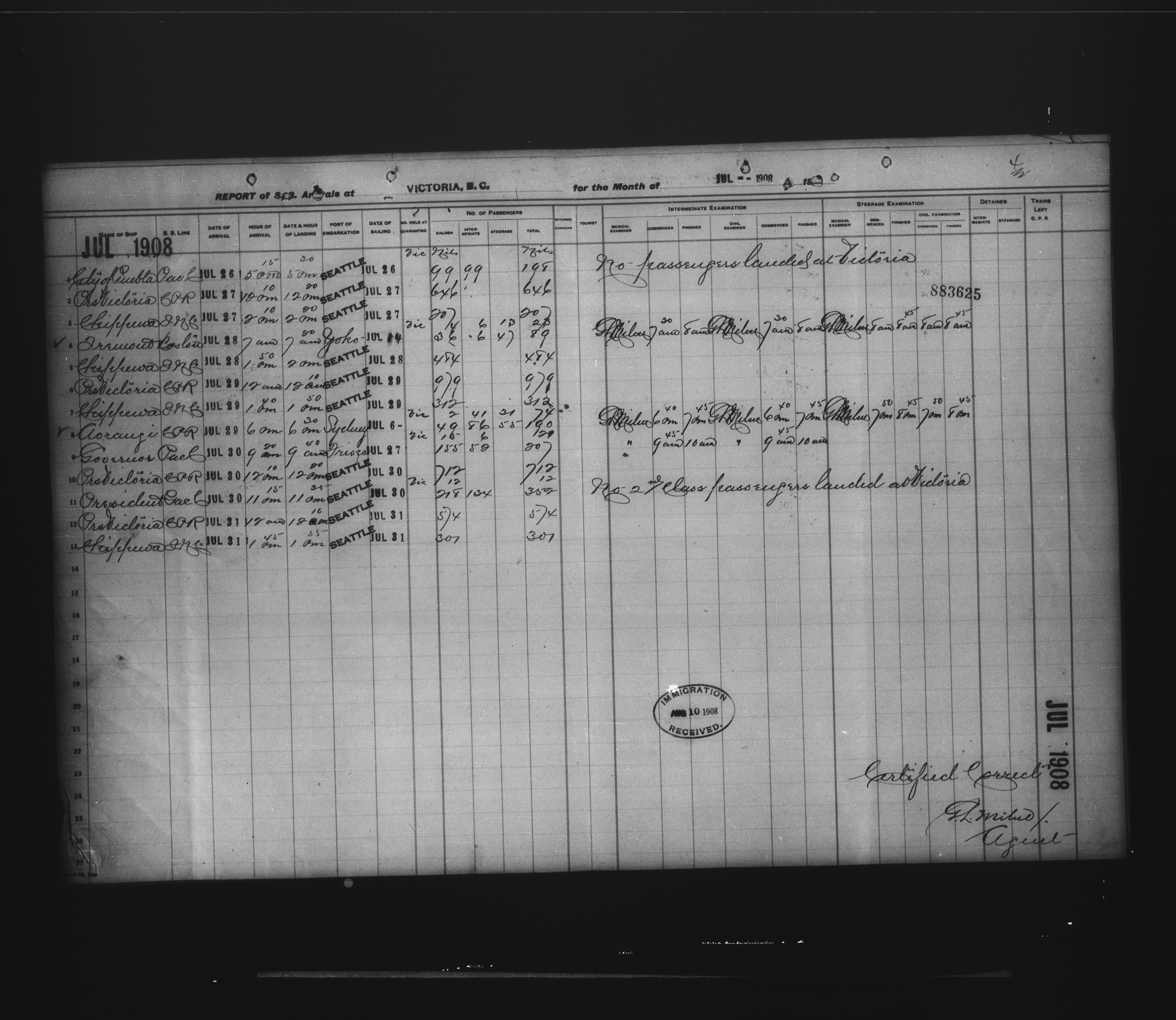 Records of entry : ship notifications of arrival, 1865-1922 - 4876