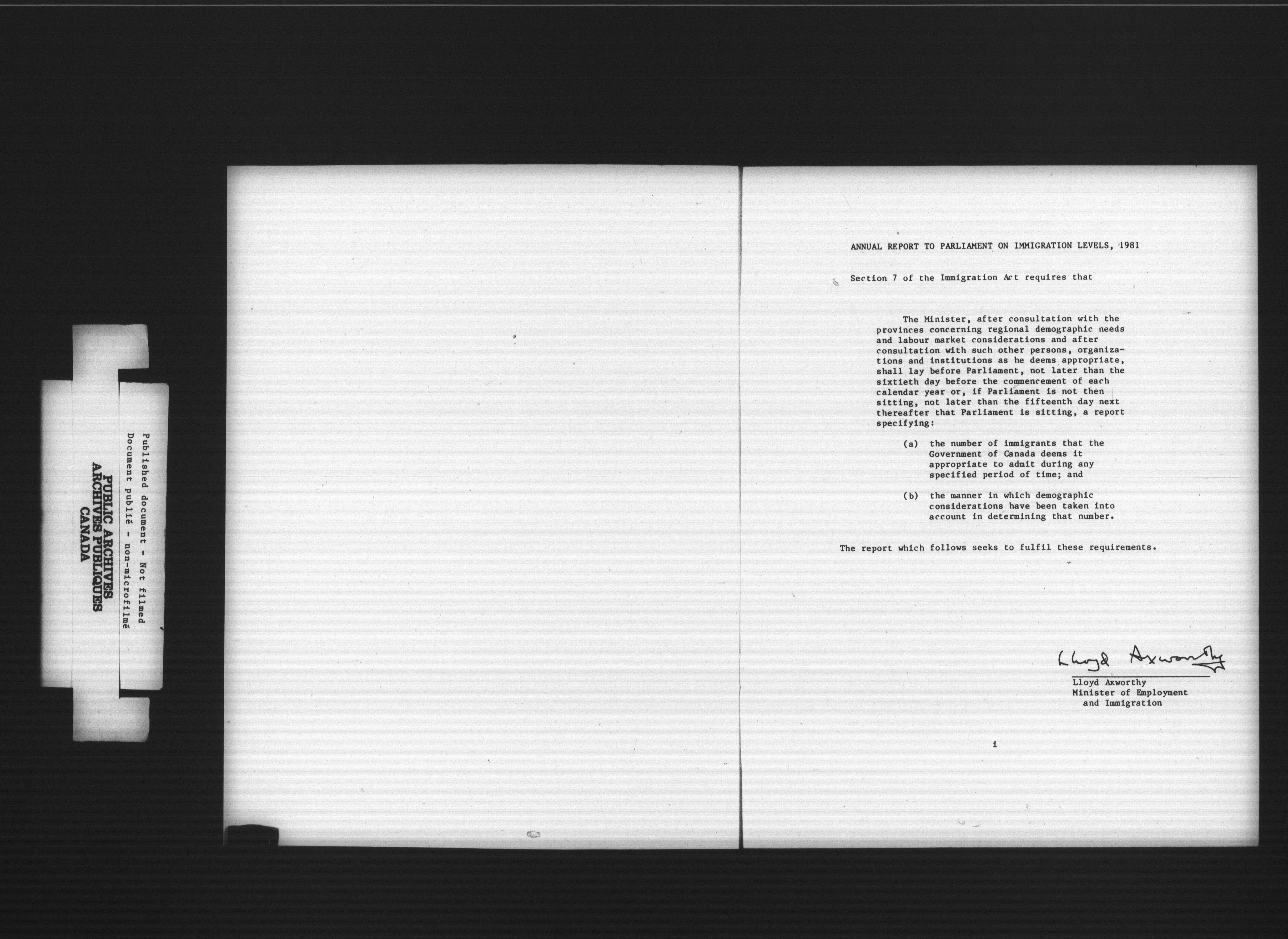 Unpublished sessional papers, 1st Session, 32nd Parliament - 4882