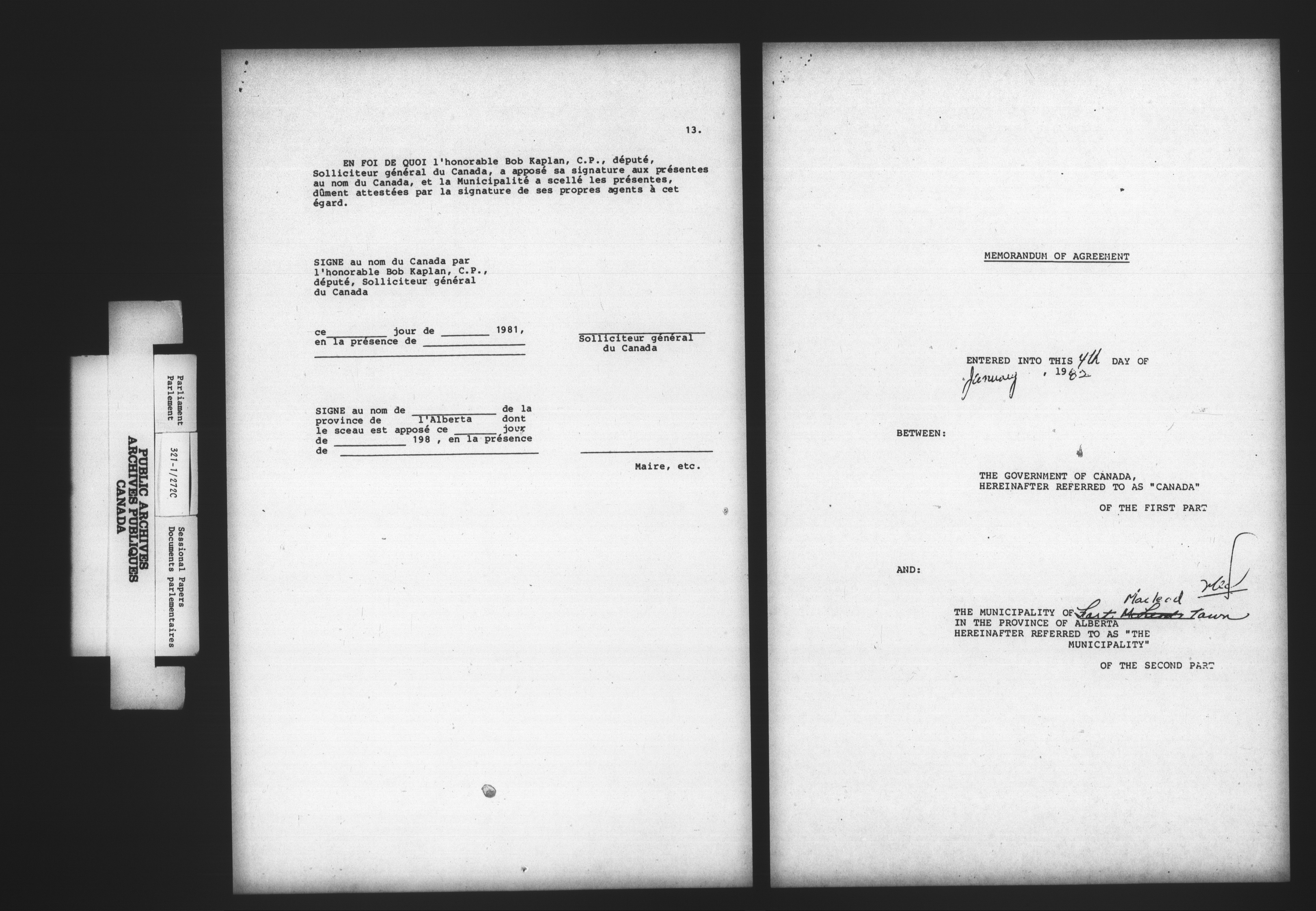Unpublished sessional papers, 1st Session, 32nd Parliament - 4886
