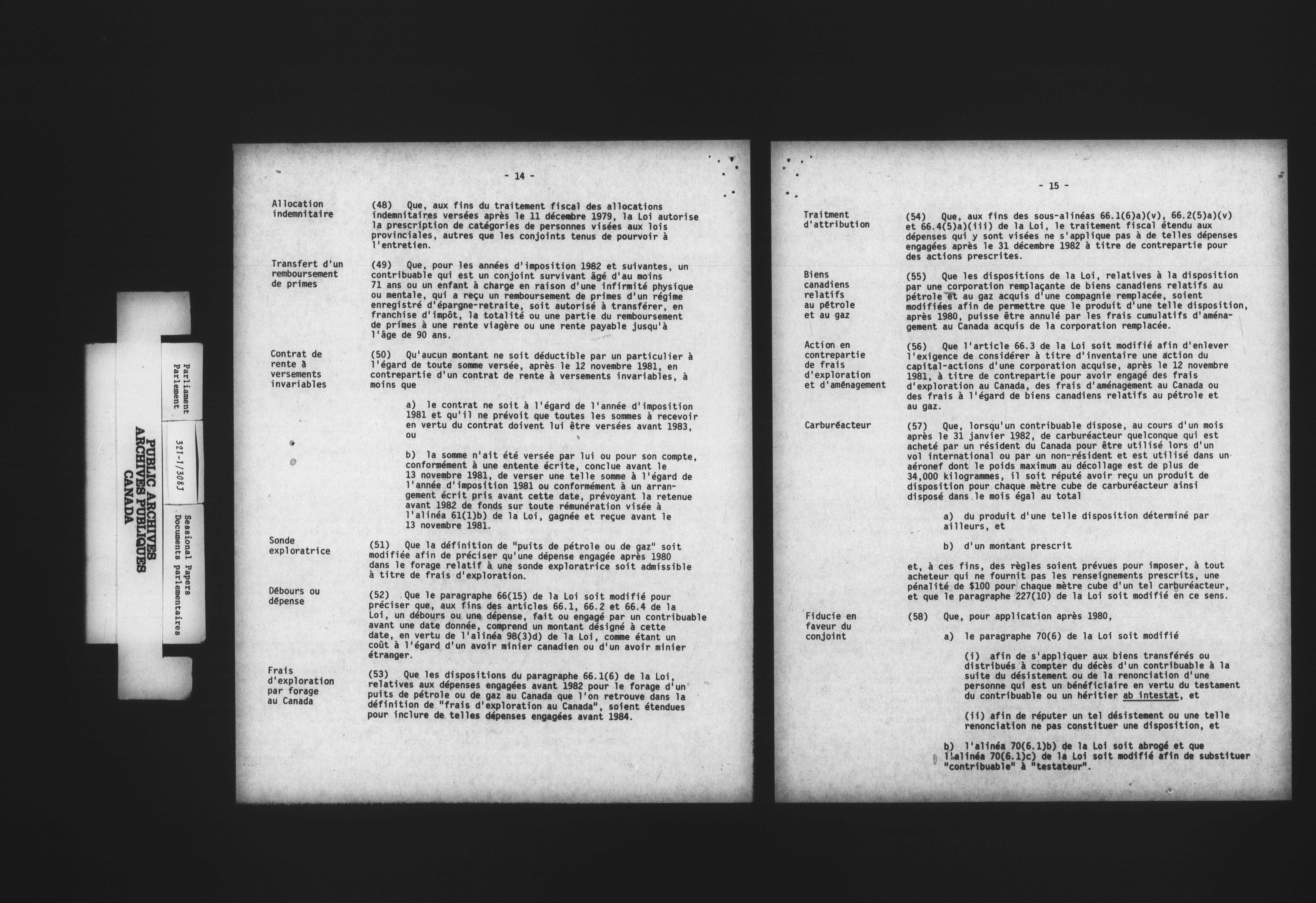 Unpublished sessional papers, 1st Session, 32nd Parliament - 4889