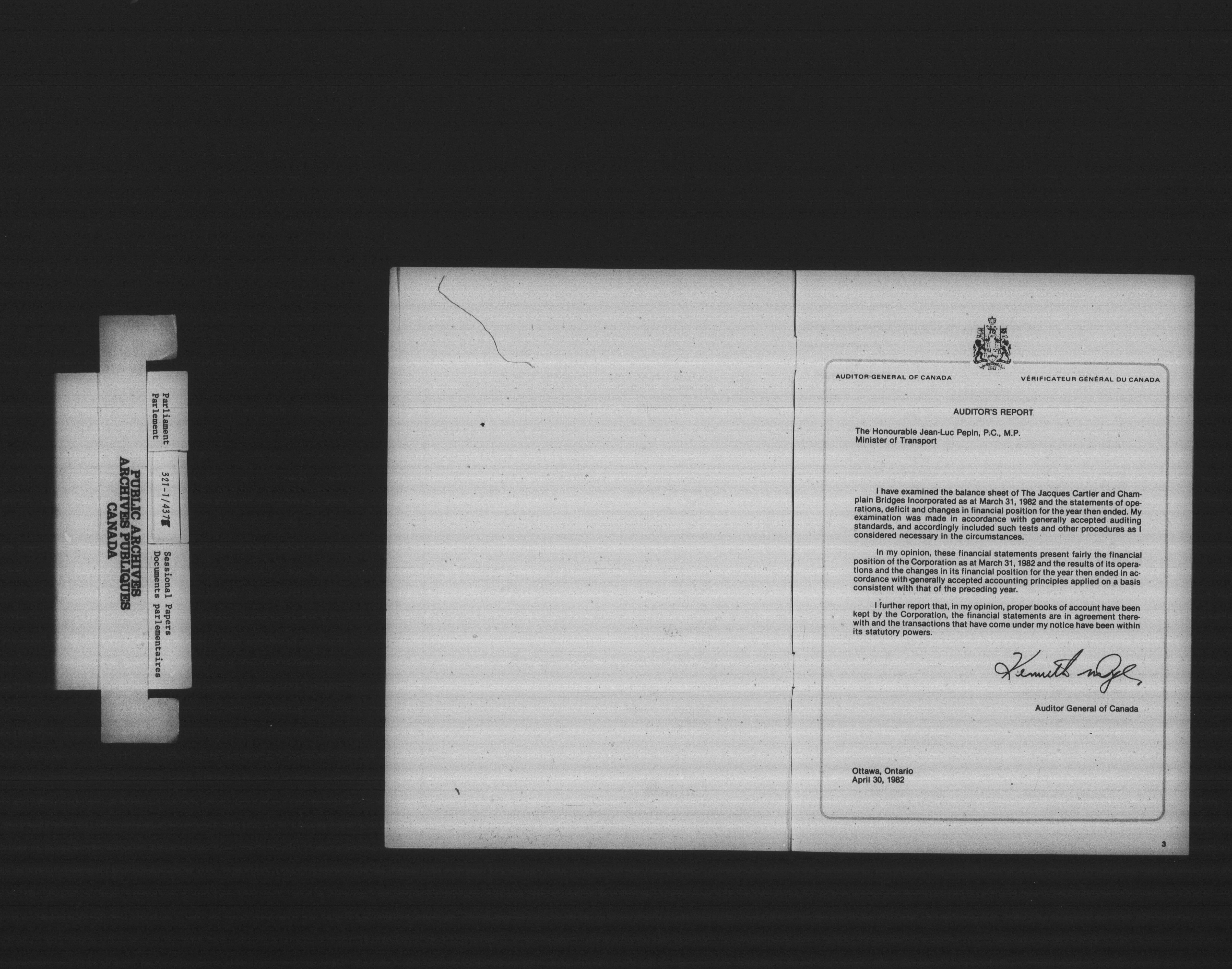 Unpublished sessional papers, 1st Session, 32nd Parliament - 4892