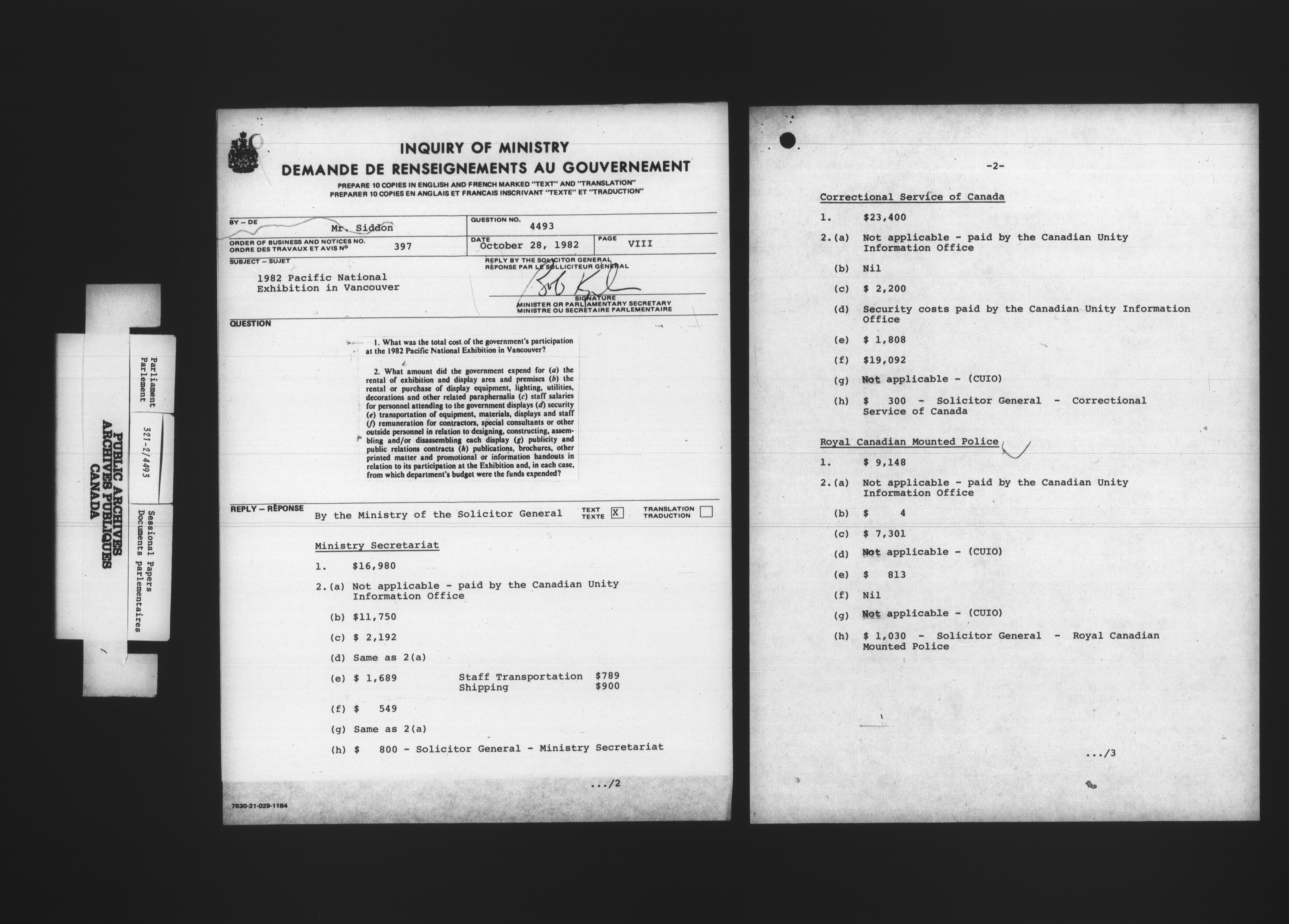 Unpublished sessional papers, 1st Session, 32nd Parliament - 4898