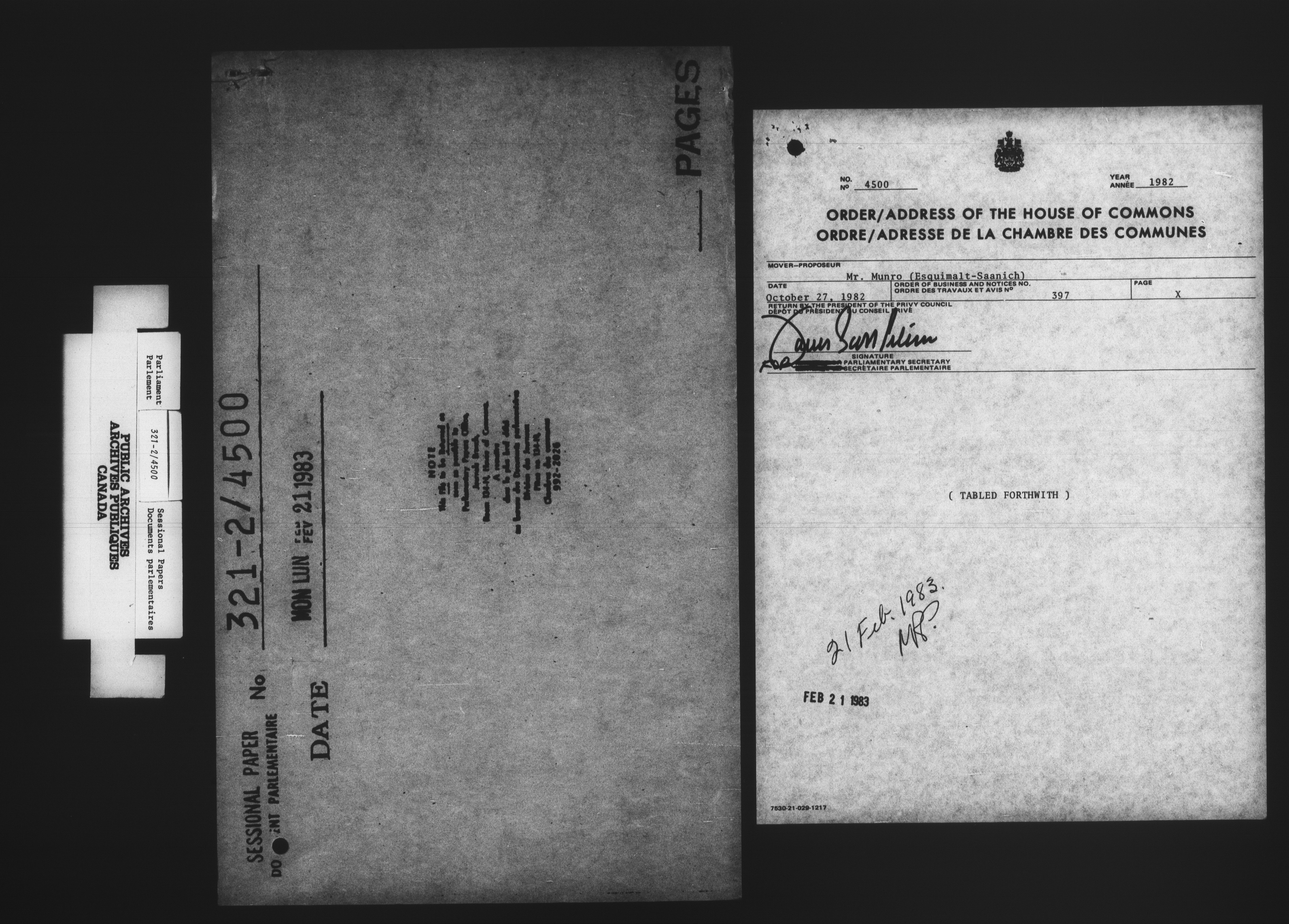 Unpublished sessional papers, 1st Session, 32nd Parliament - 4898