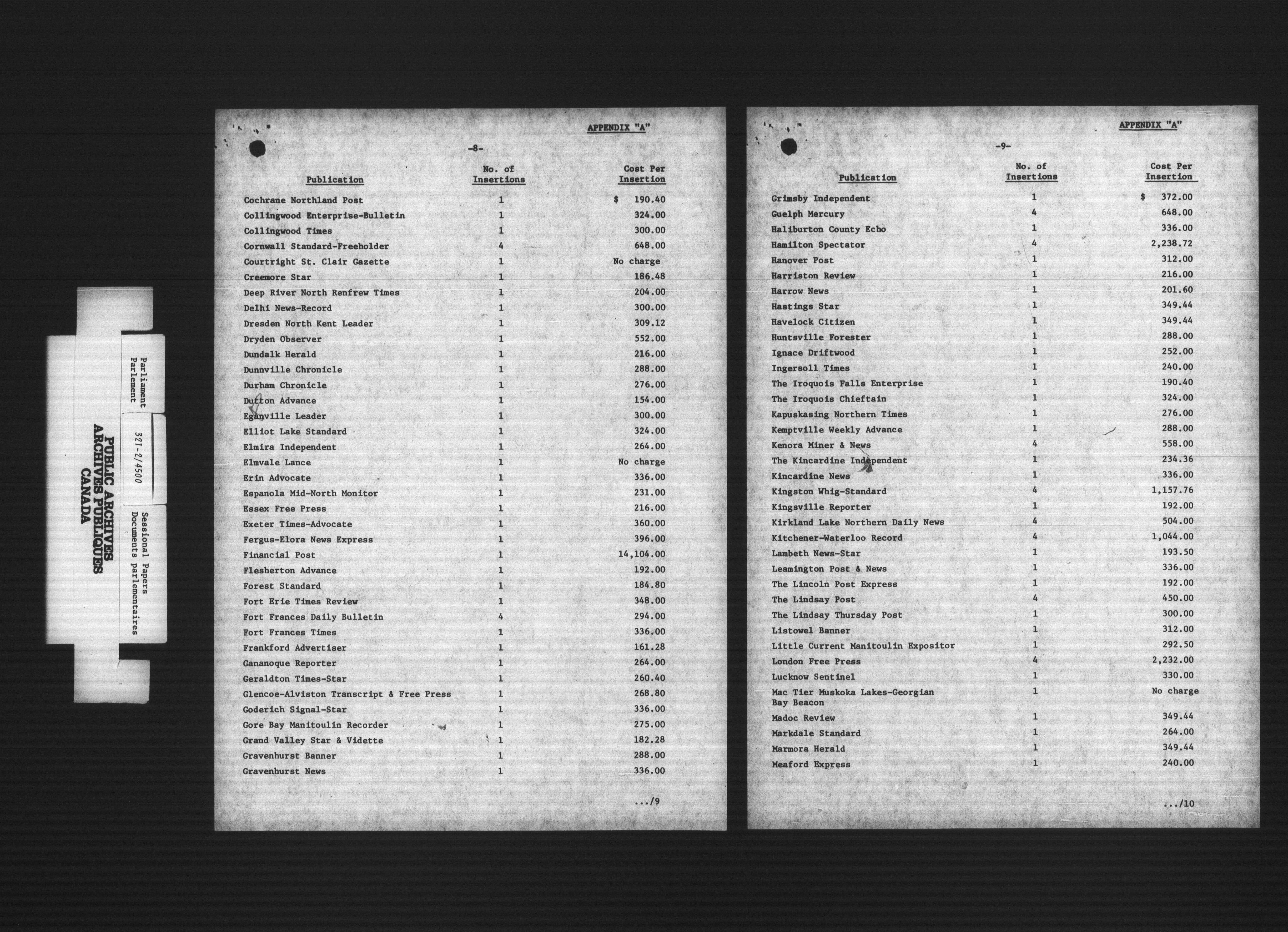 Unpublished sessional papers, 1st Session, 32nd Parliament - 4898