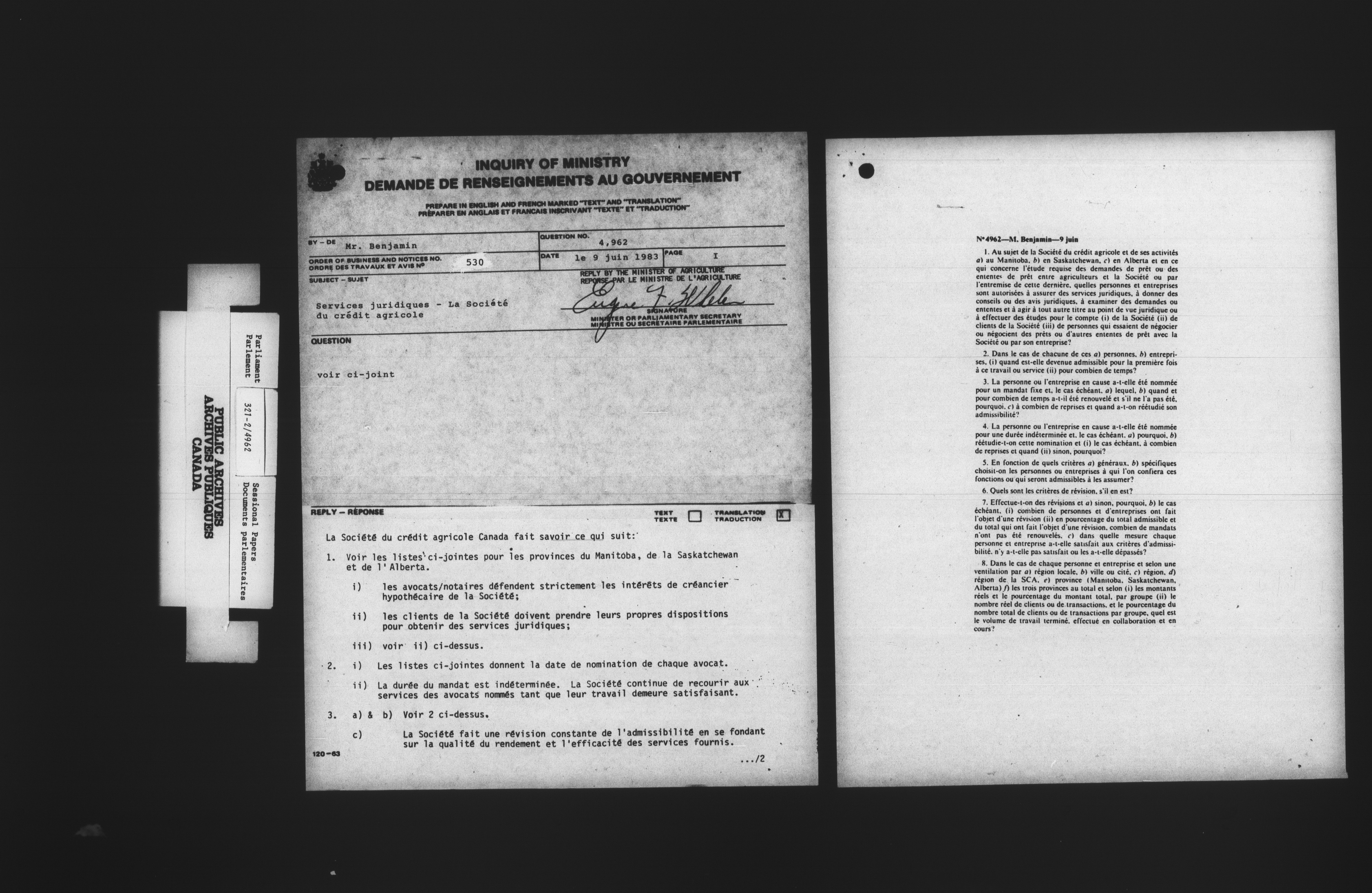 Unpublished sessional papers, 1st Session, 32nd Parliament - 4898