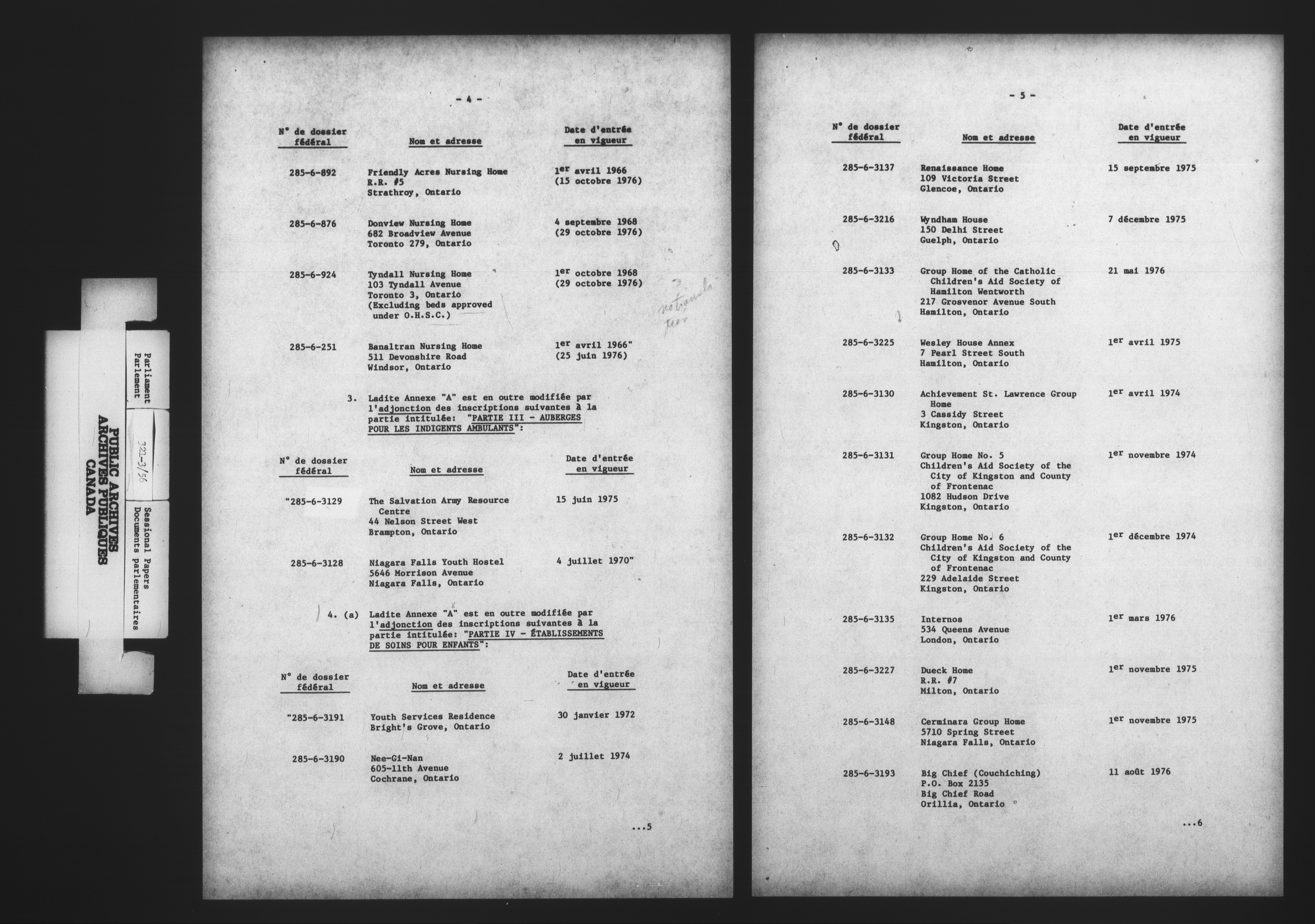 Unpublished sessional papers, 1st Session, 32nd Parliament - 4899