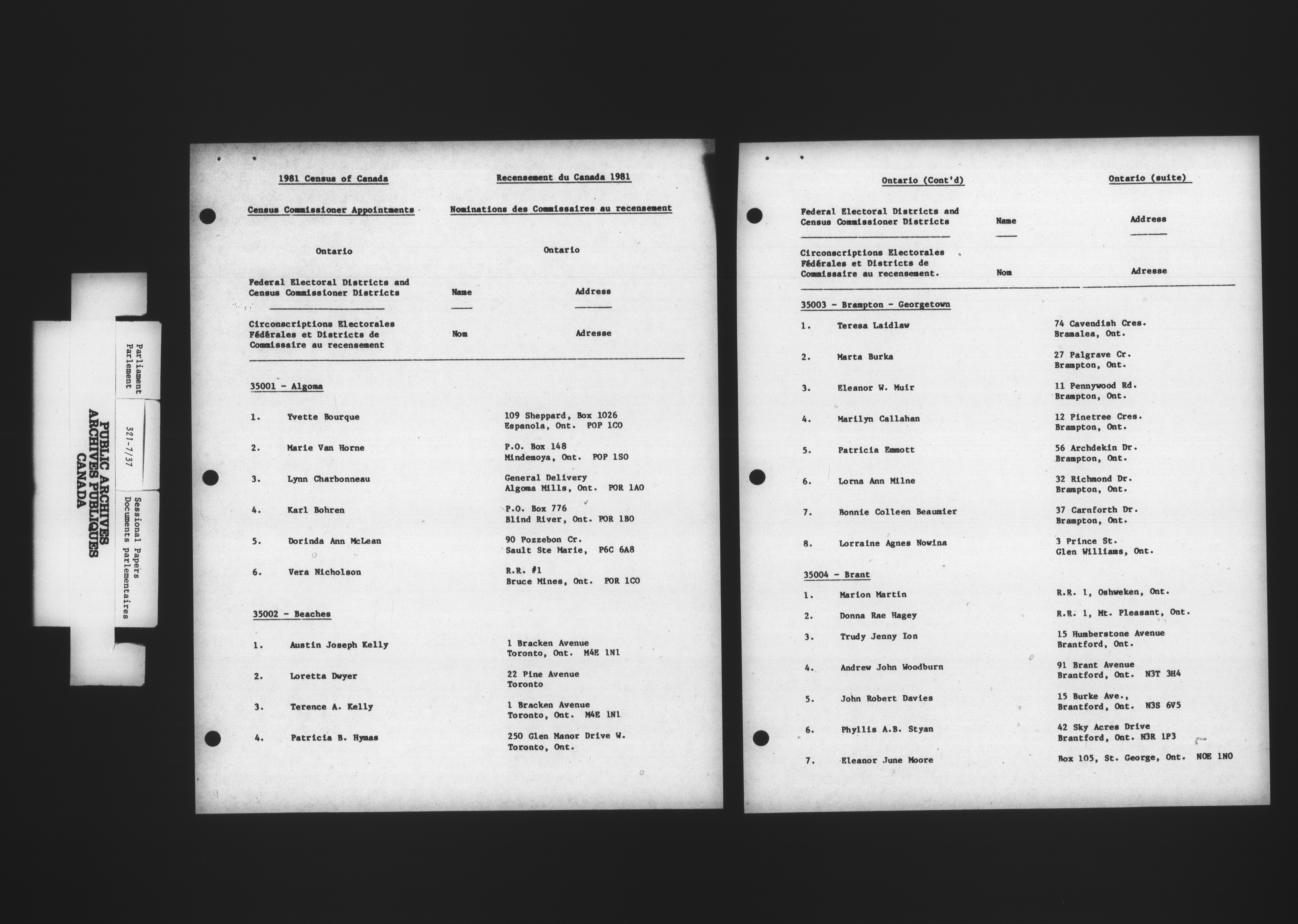 Unpublished sessional papers, 1st Session, 32nd Parliament - 4907