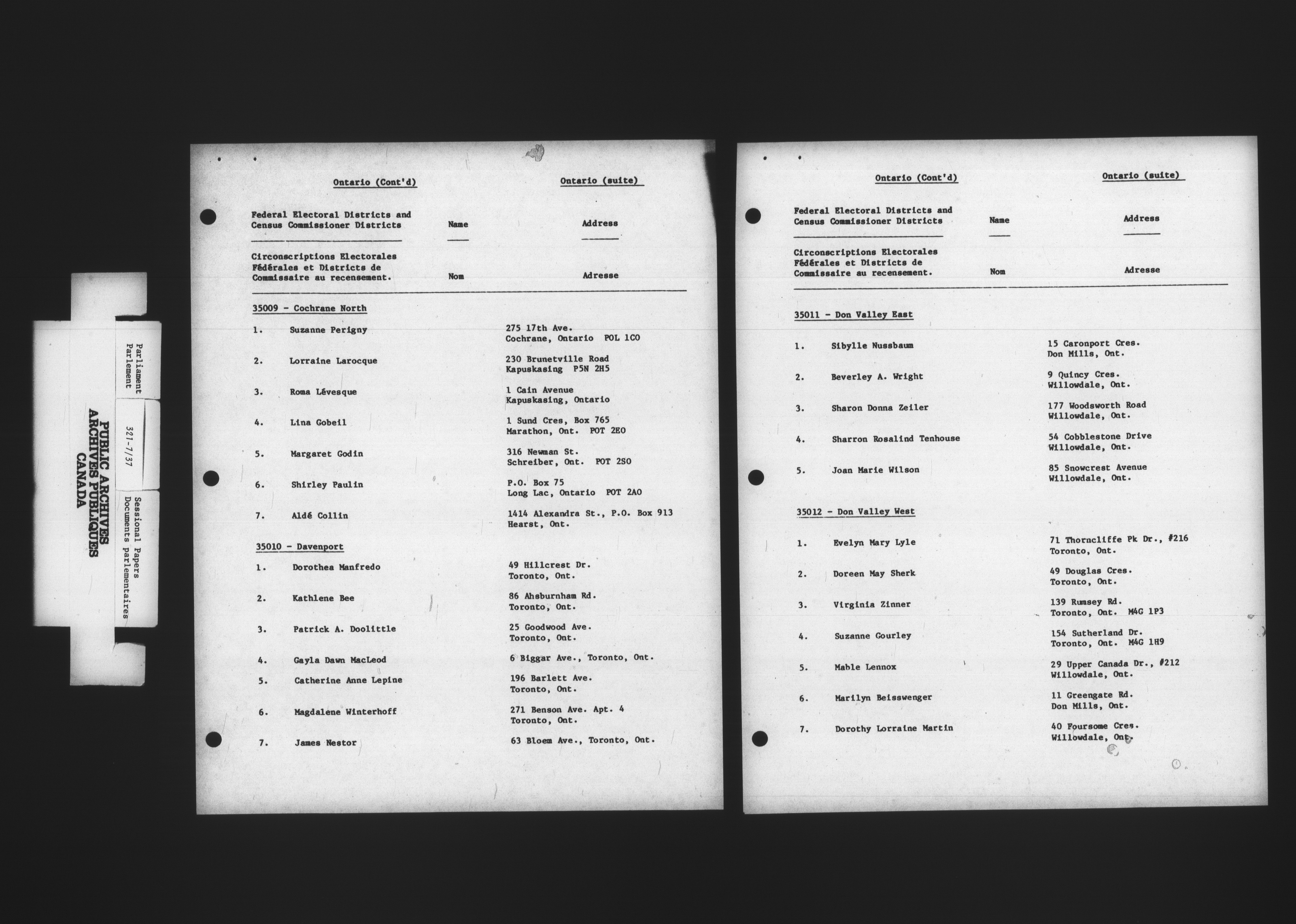 Unpublished sessional papers, 1st Session, 32nd Parliament - 4907