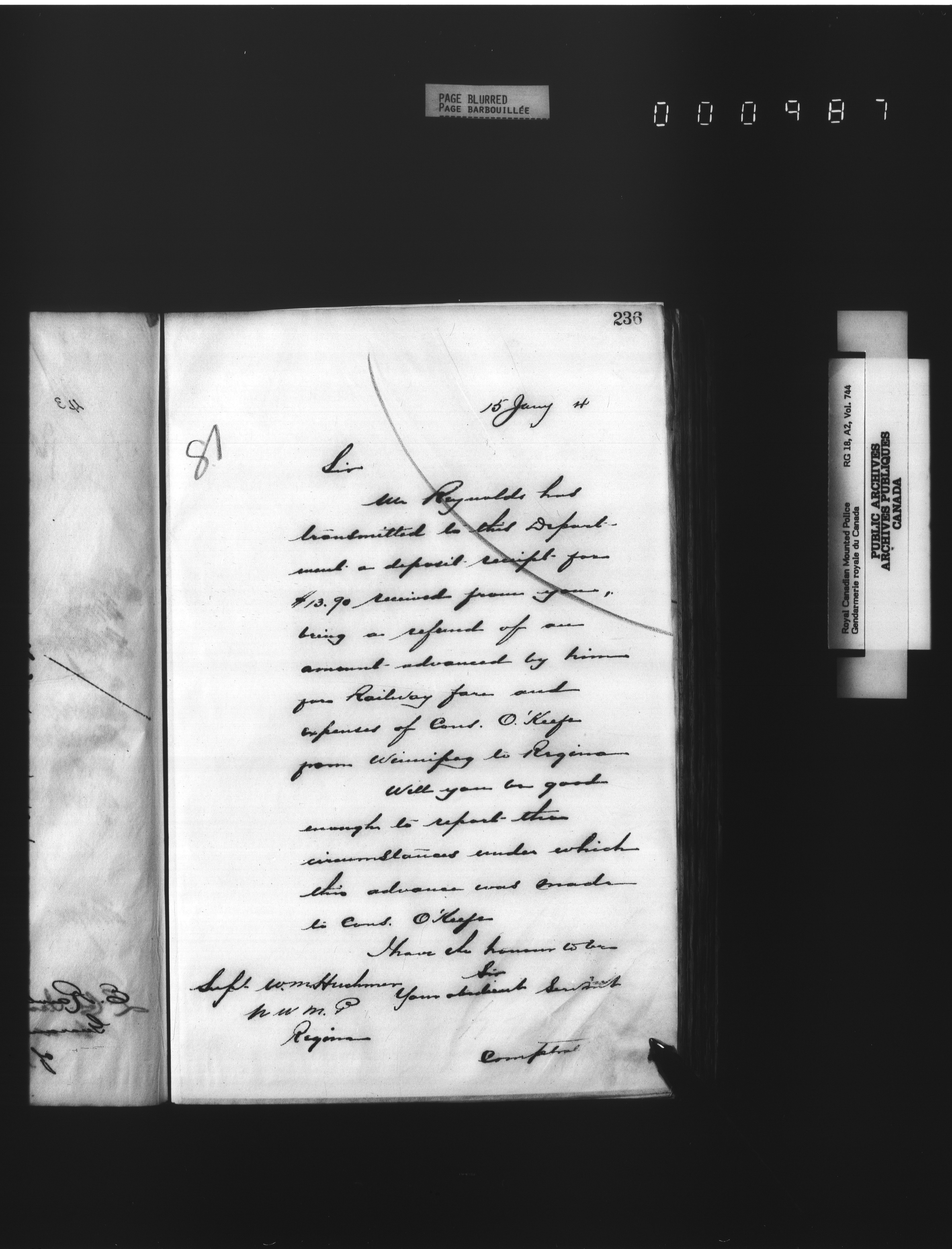 Royal Canadian Mounted Police, Office of the Comptroller : Letterbooks, 1883-1919 : T-4911