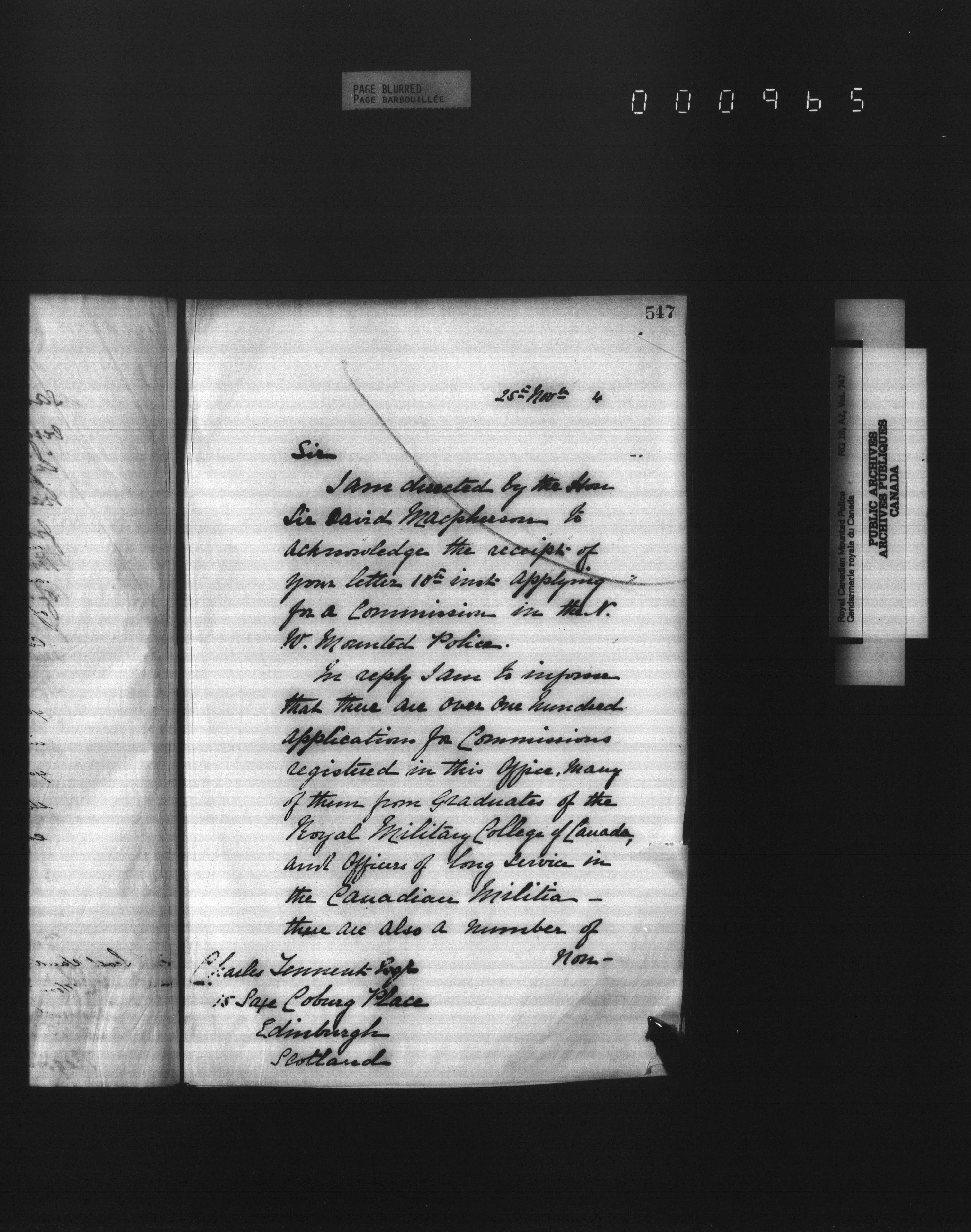 Royal Canadian Mounted Police, Office of the Comptroller : Letterbooks, 1883-1919 : T-4914