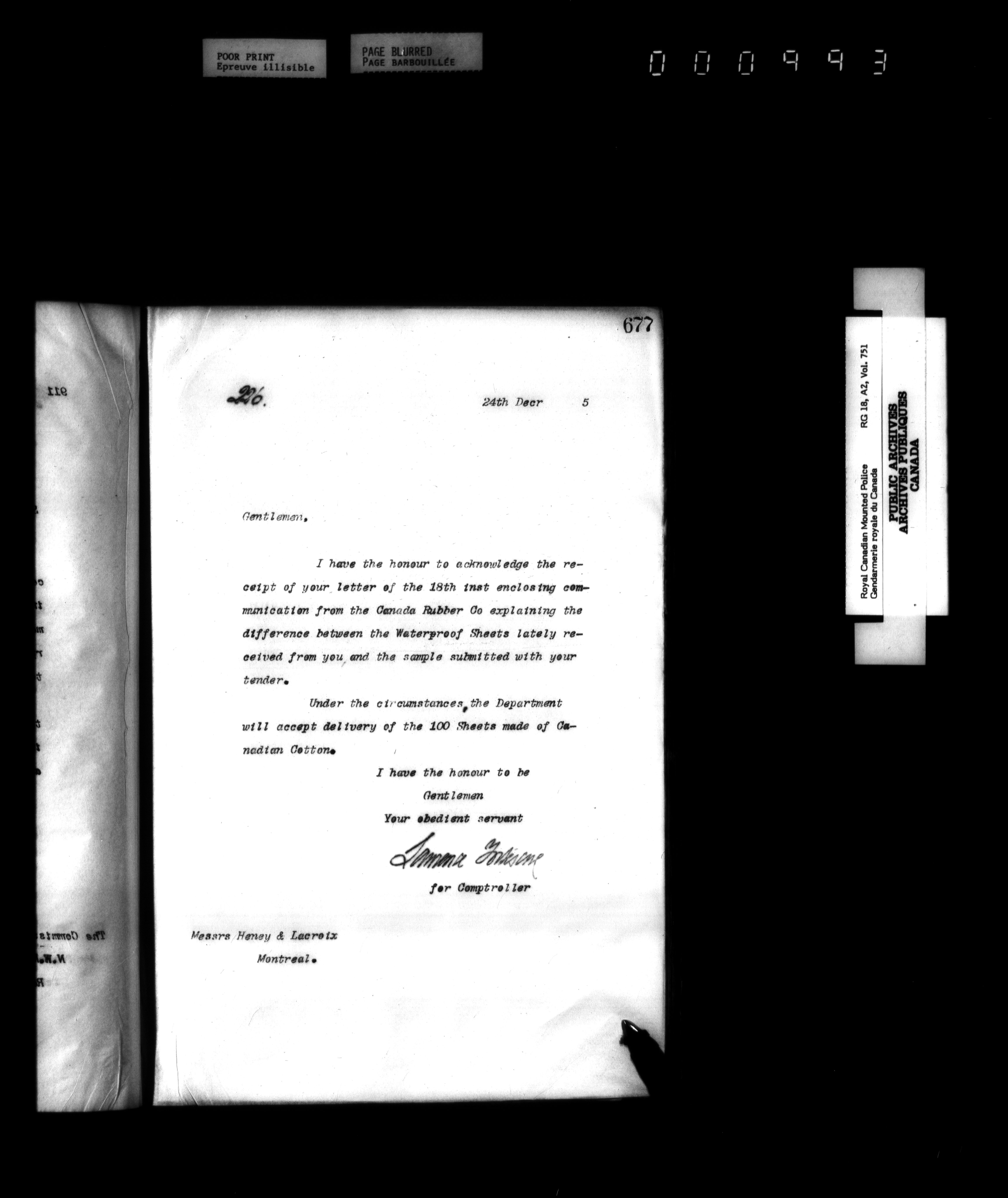Royal Canadian Mounted Police, Office of the Comptroller : Letterbooks - 4918
