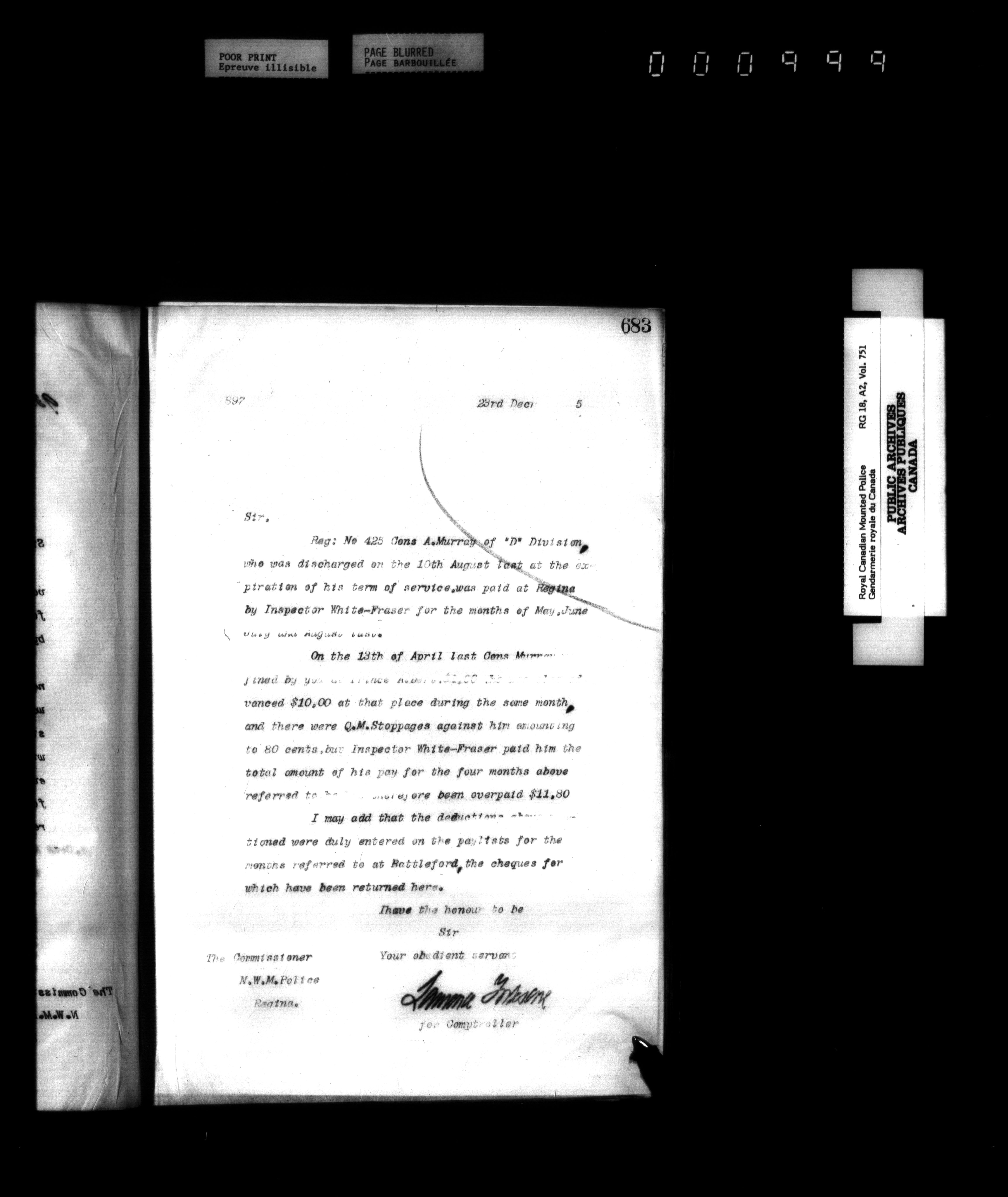 Royal Canadian Mounted Police, Office of the Comptroller : Letterbooks - 4918