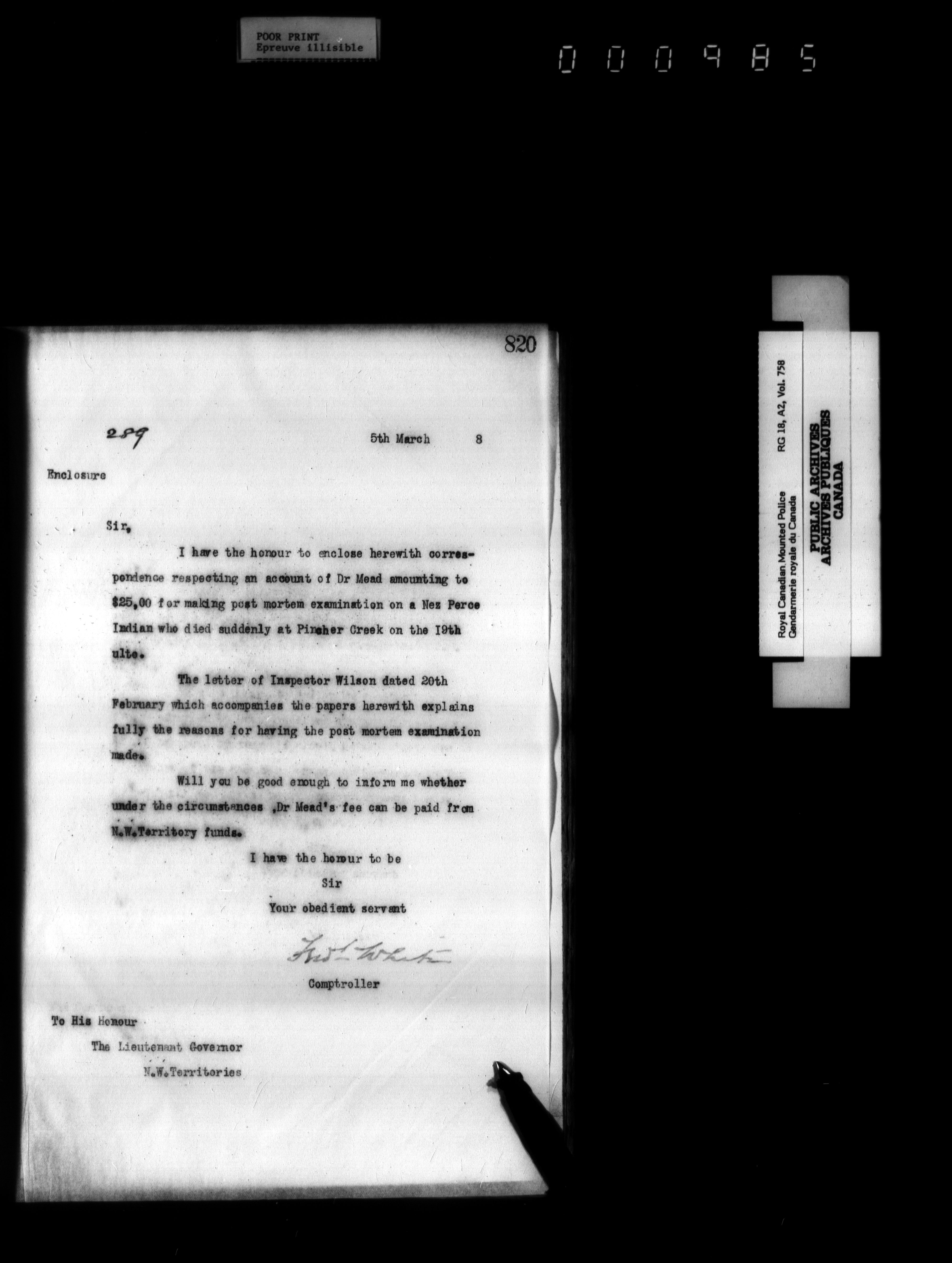Royal Canadian Mounted Police, Office of the Comptroller : Letterbooks, 1883-1919 : T-4925