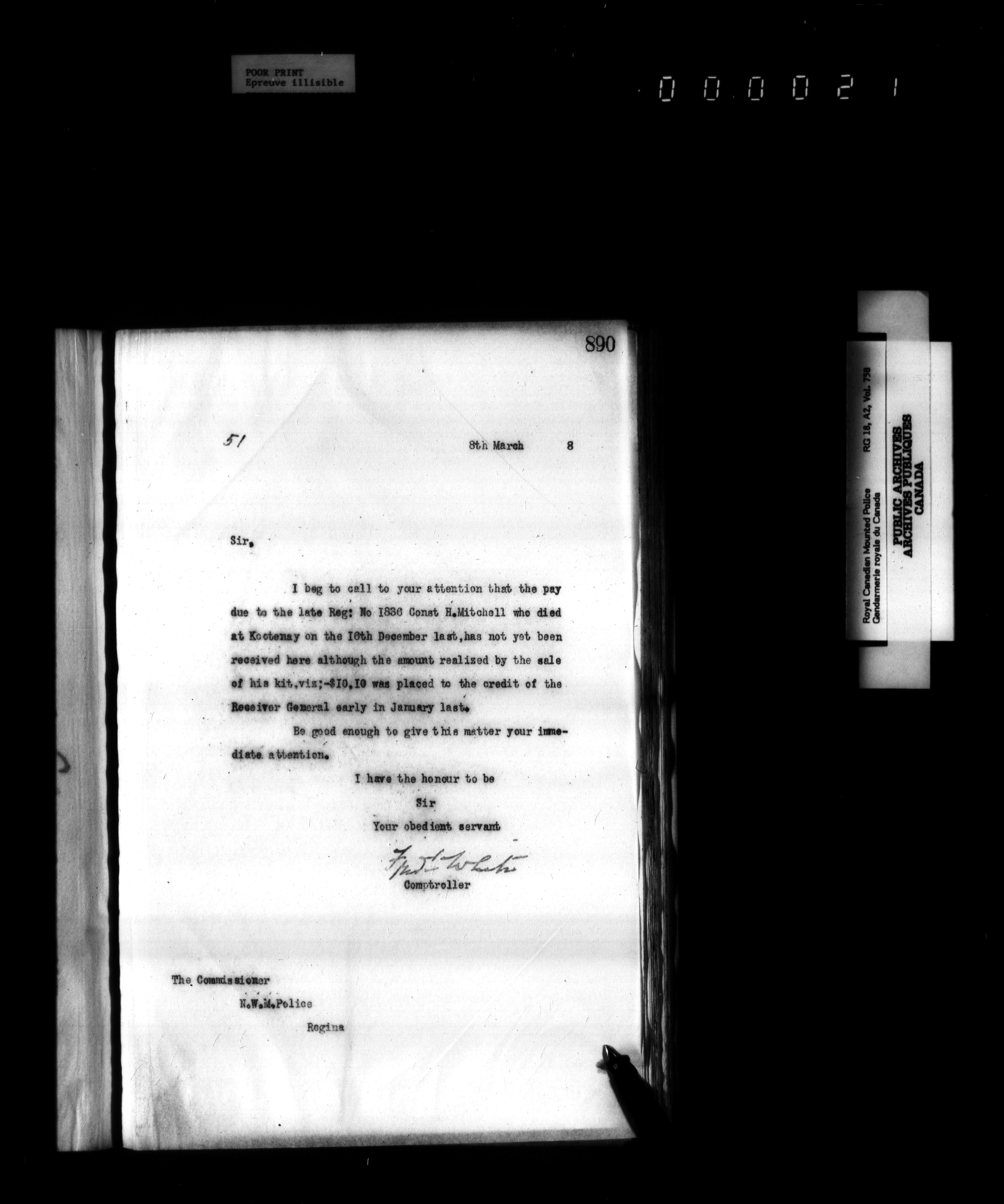 Royal Canadian Mounted Police, Office of the Comptroller : Letterbooks, 1883-1919 : T-4926