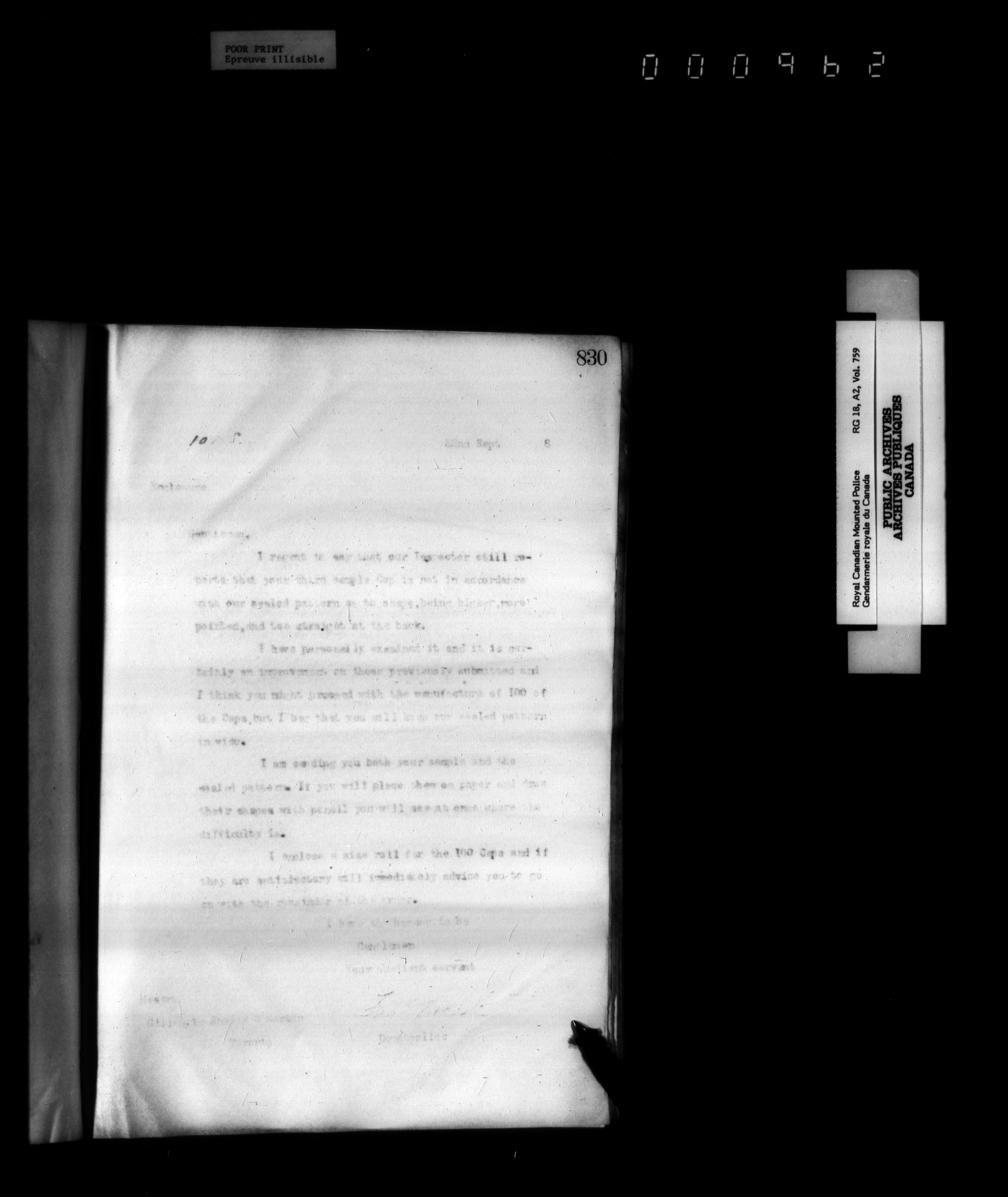 Royal Canadian Mounted Police, Office of the Comptroller : Letterbooks, 1883-1919 : T-4926