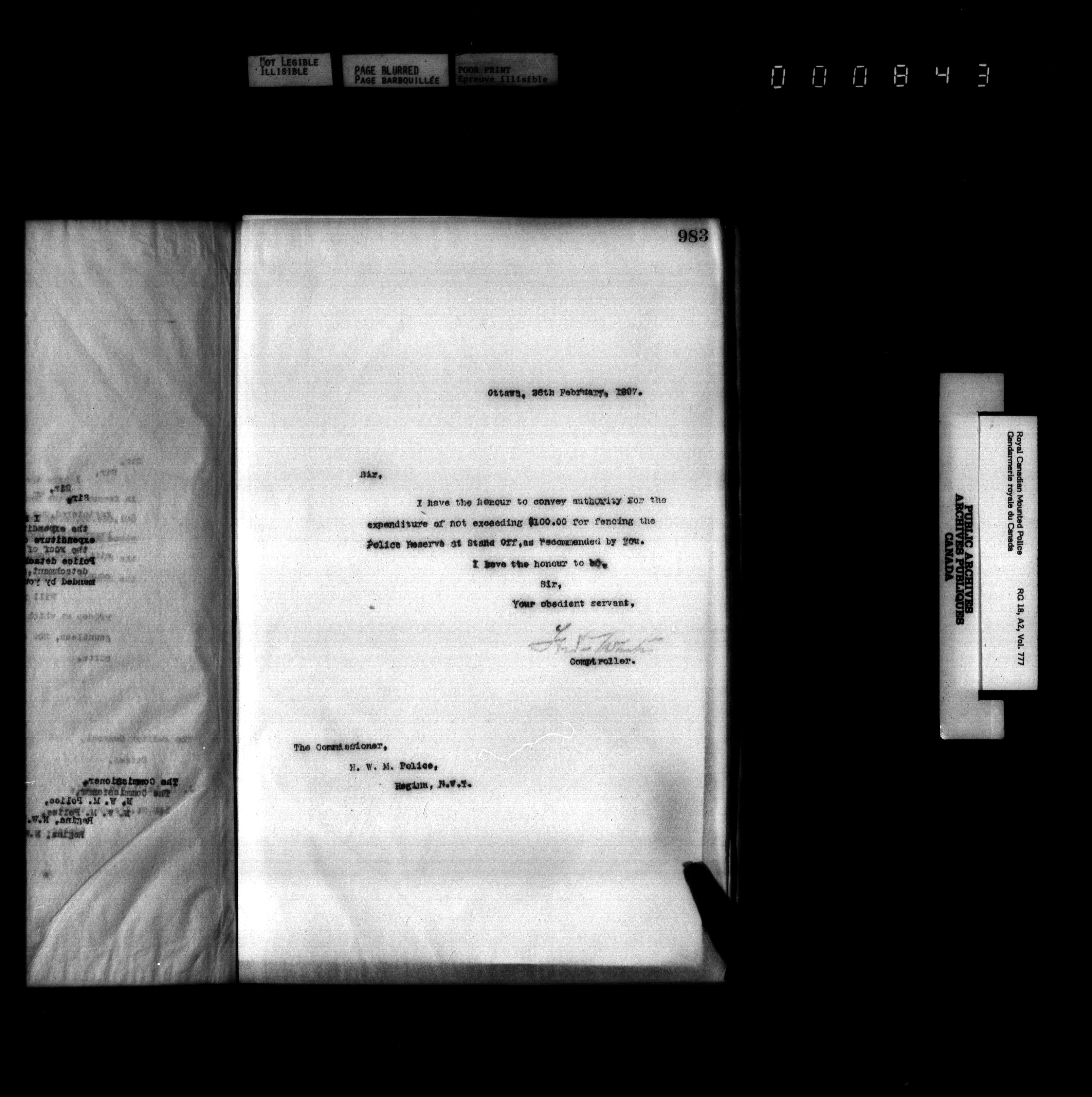 Royal Canadian Mounted Police, Office of the Comptroller : Letterbooks, 1883-1919 : T-4945