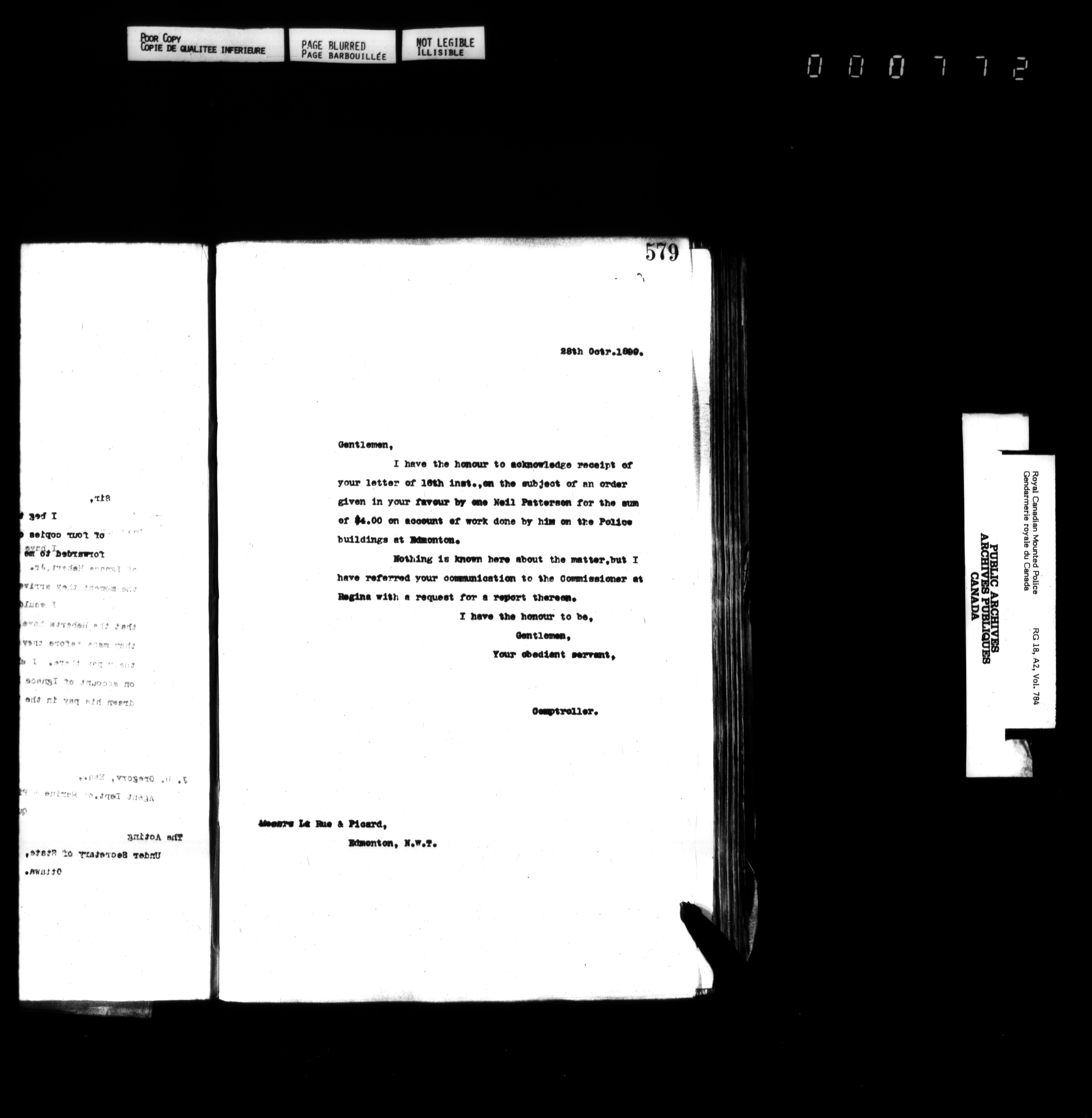 Royal Canadian Mounted Police, Office of the Comptroller : Letterbooks - 4953