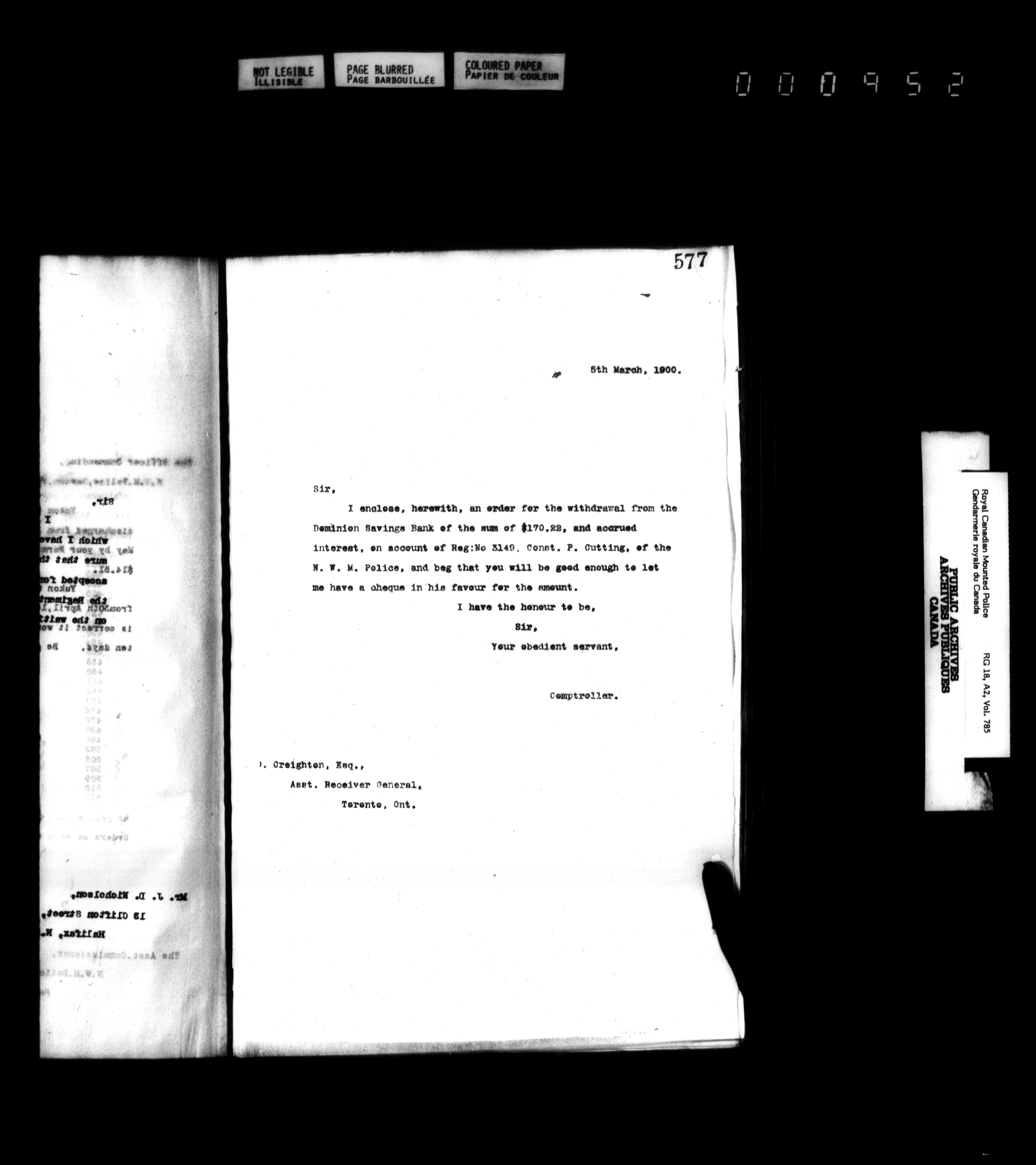 Royal Canadian Mounted Police, Office of the Comptroller : Letterbooks - 4954