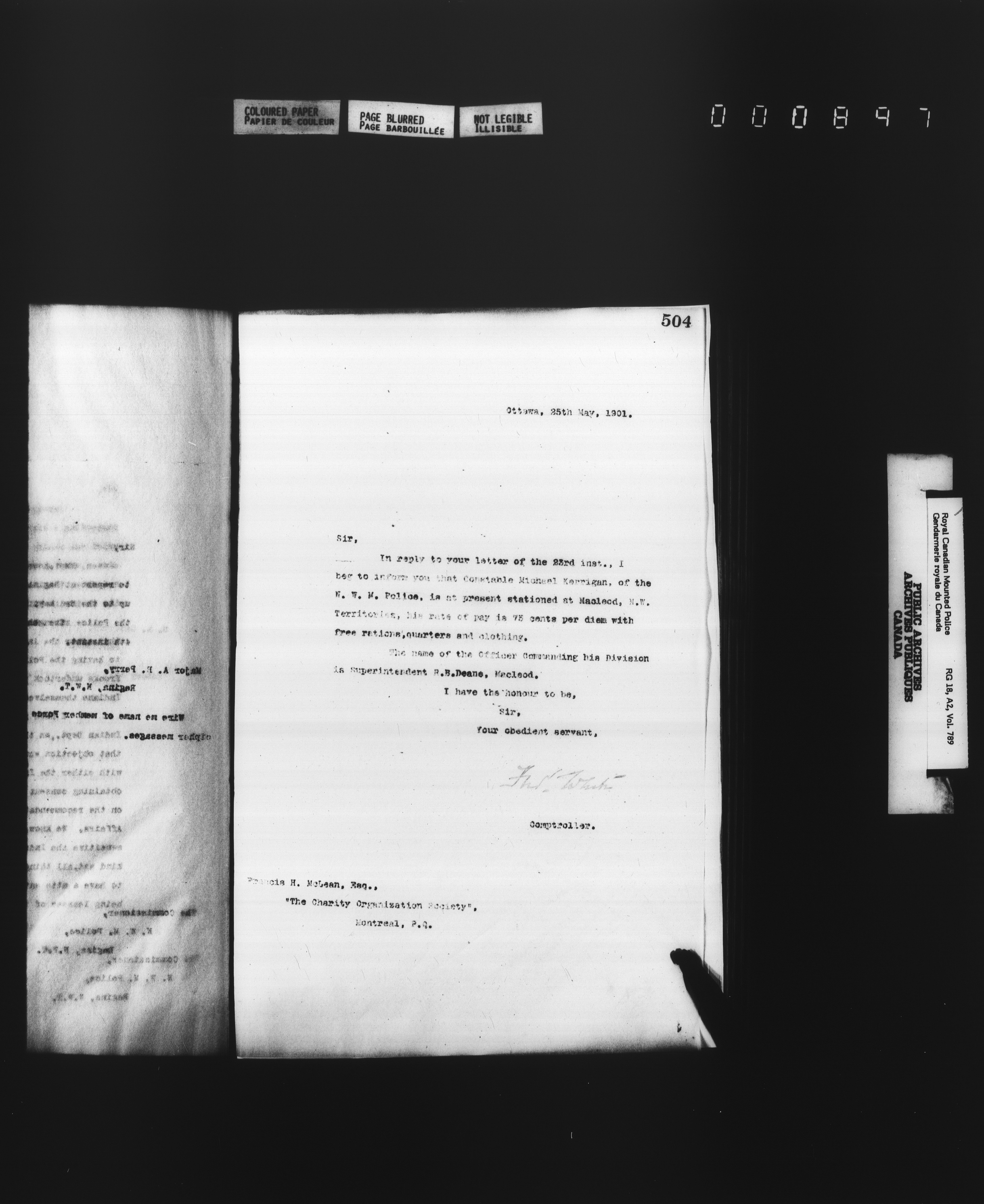Royal Canadian Mounted Police, Office of the Comptroller : Letterbooks, 1883-1919 : T-4958