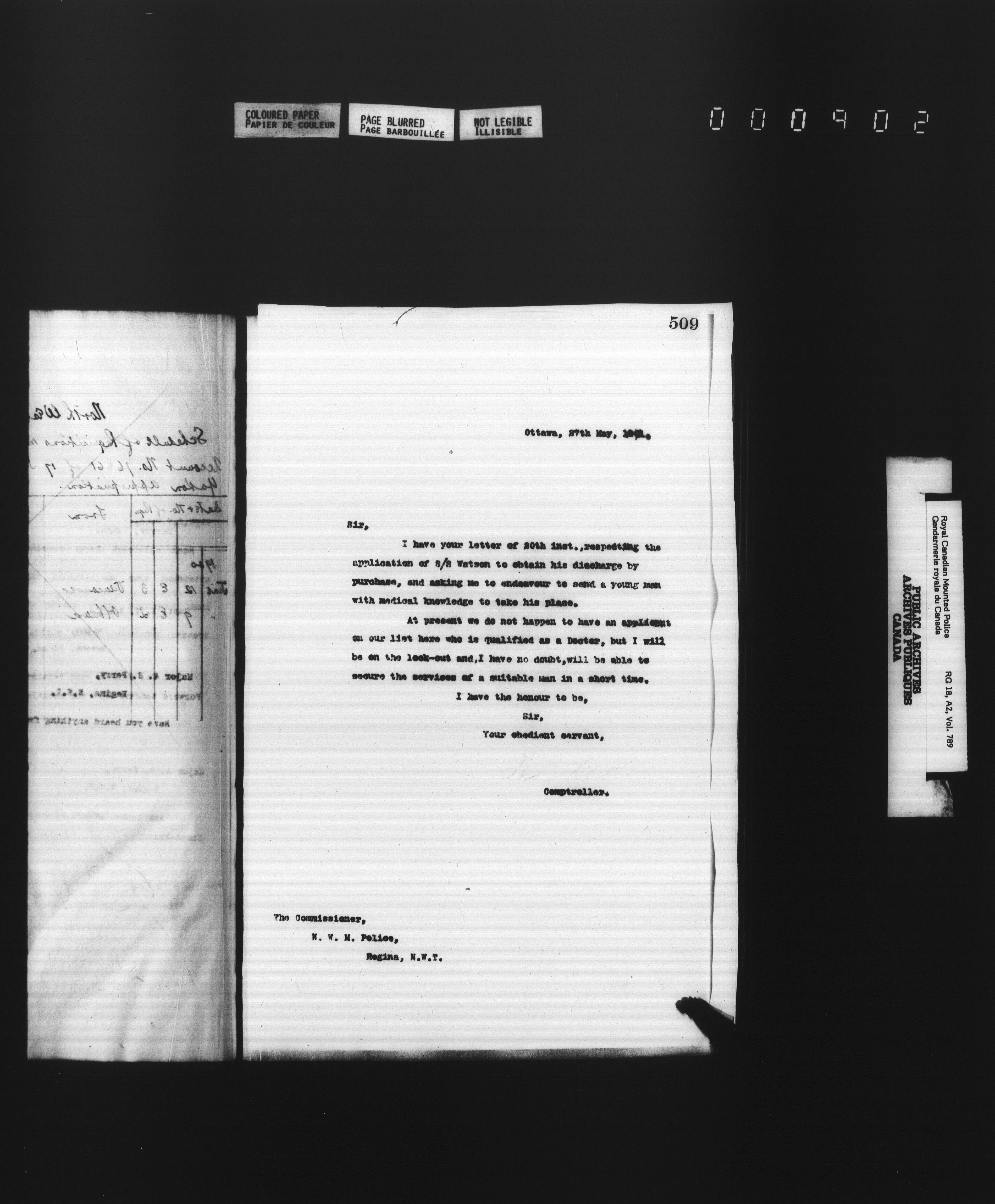 Royal Canadian Mounted Police, Office of the Comptroller : Letterbooks, 1883-1919 : T-4958