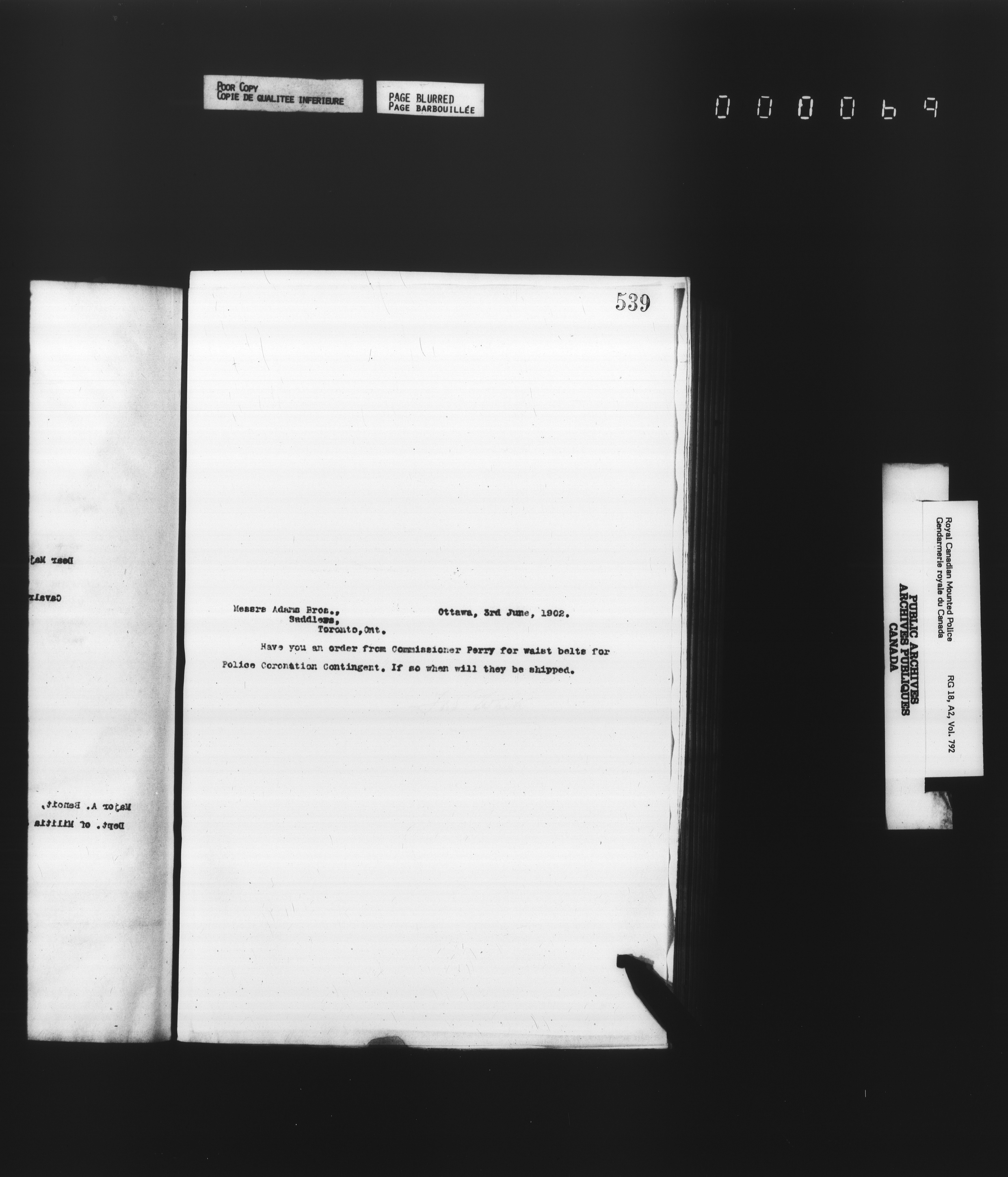 Royal Canadian Mounted Police, Office of the Comptroller : Letterbooks - 4962