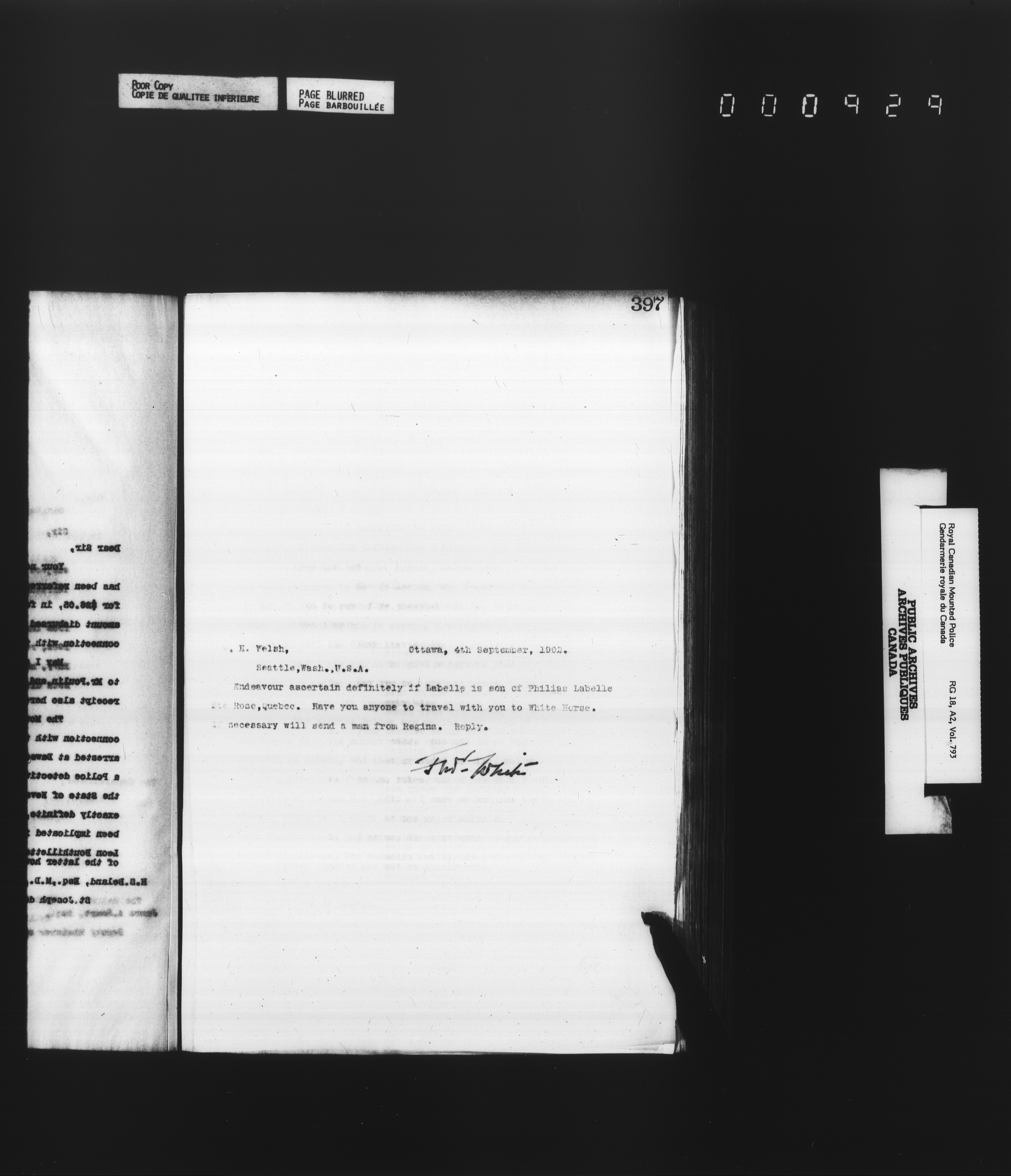 Royal Canadian Mounted Police, Office of the Comptroller : Letterbooks, 1883-1919 : T-4962