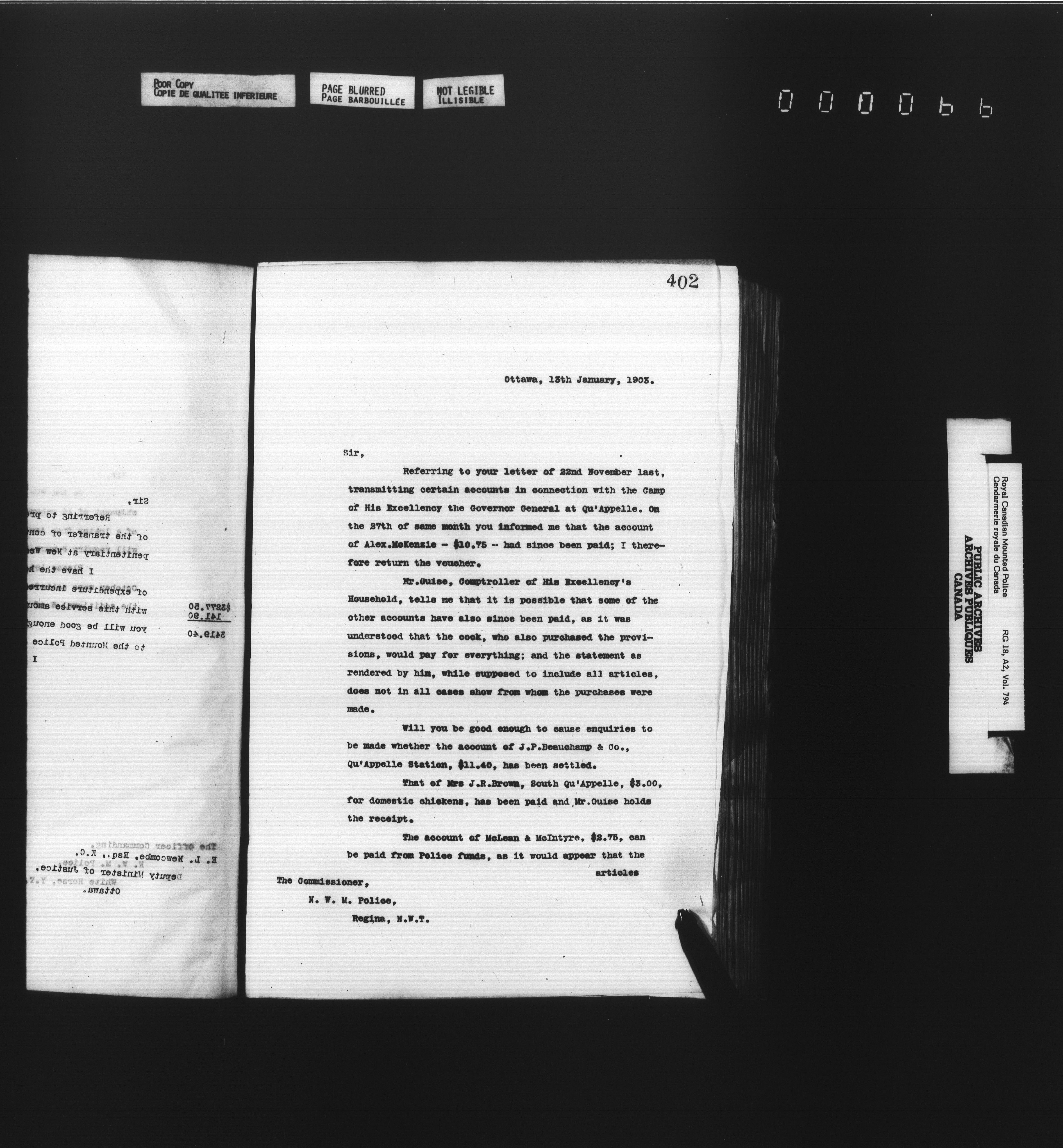 Royal Canadian Mounted Police, Office of the Comptroller : Letterbooks - 4964