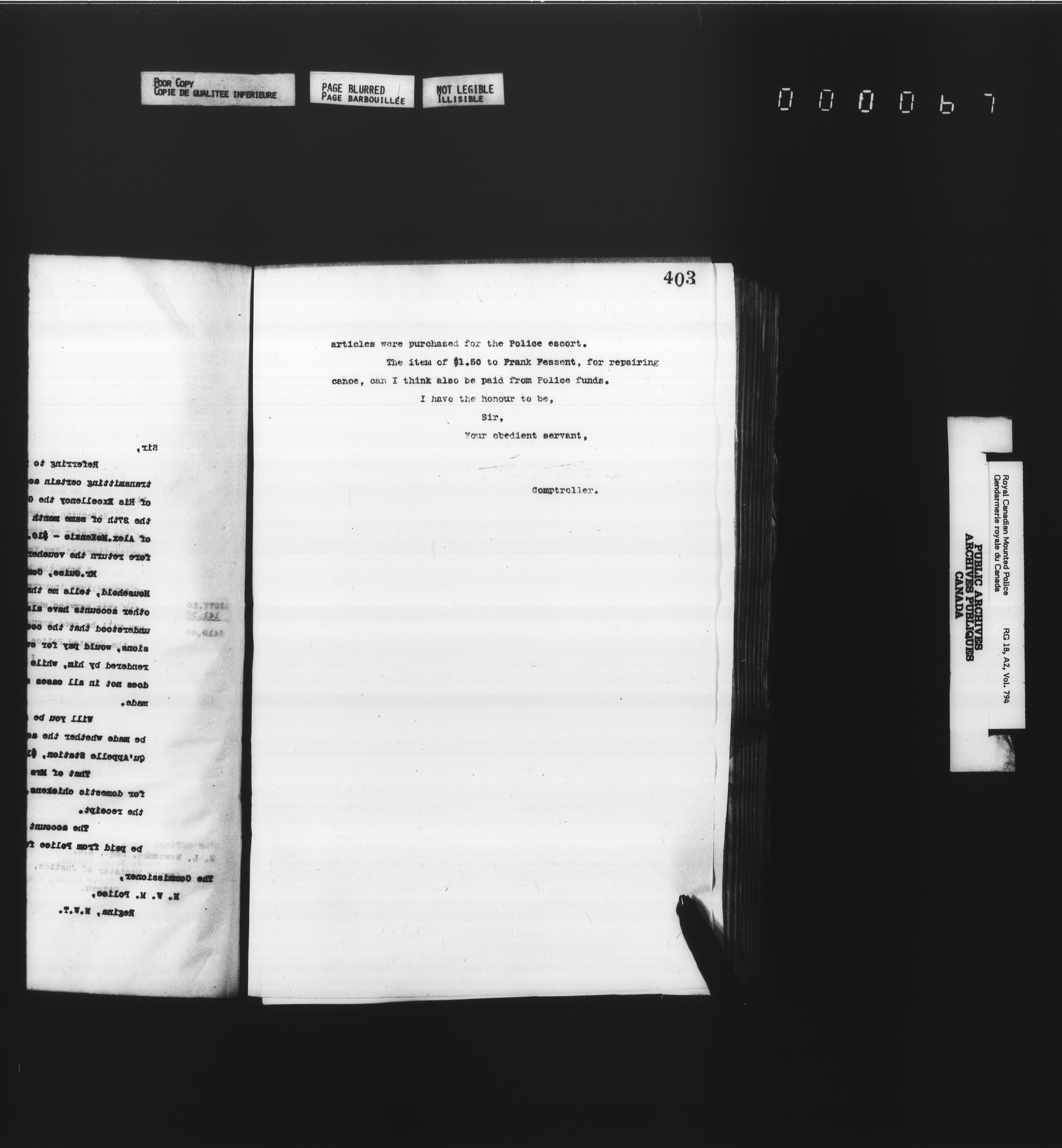Royal Canadian Mounted Police, Office of the Comptroller : Letterbooks - 4964