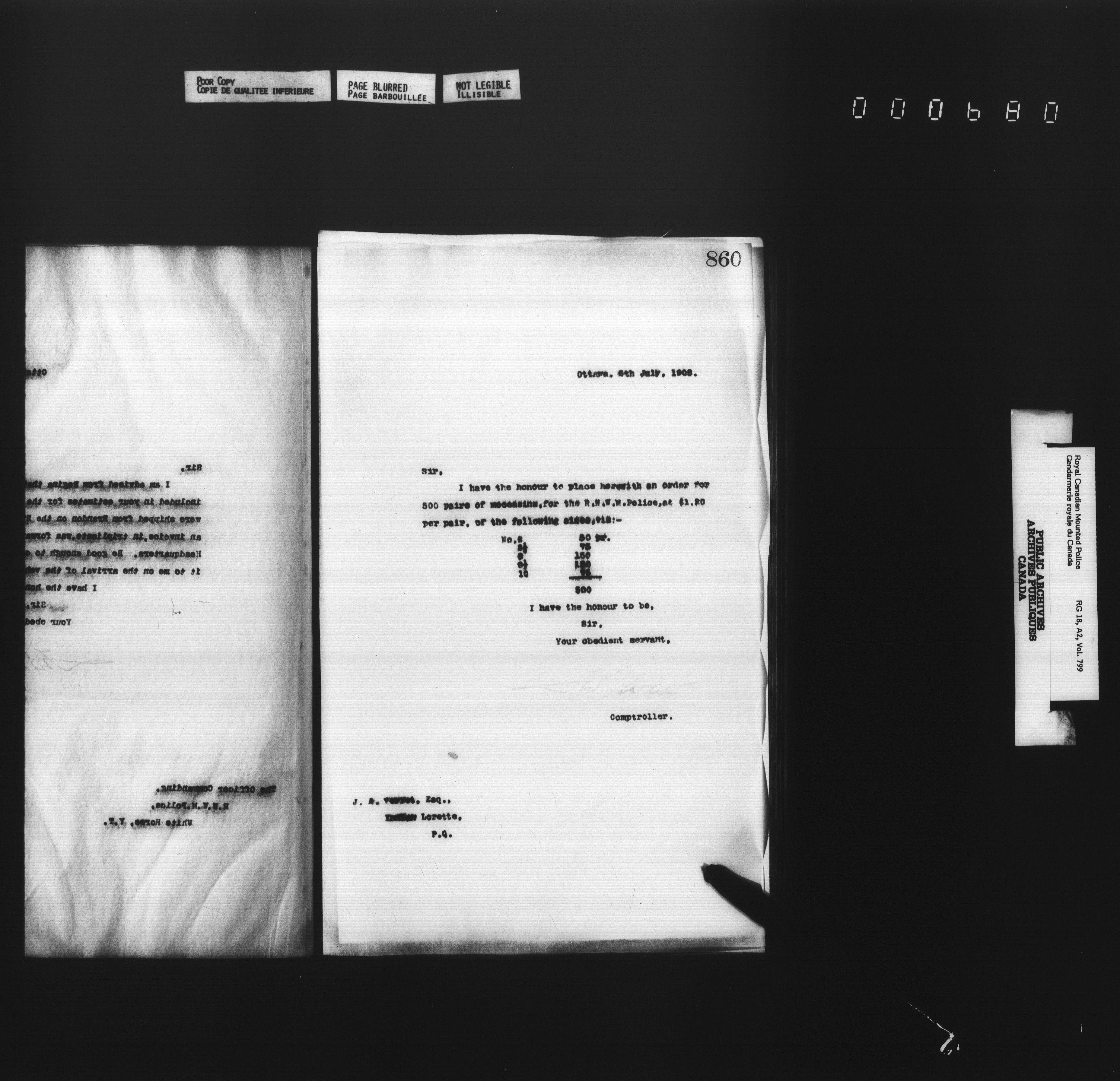 Royal Canadian Mounted Police, Office of the Comptroller : Letterbooks, 1883-1919 : T-4970