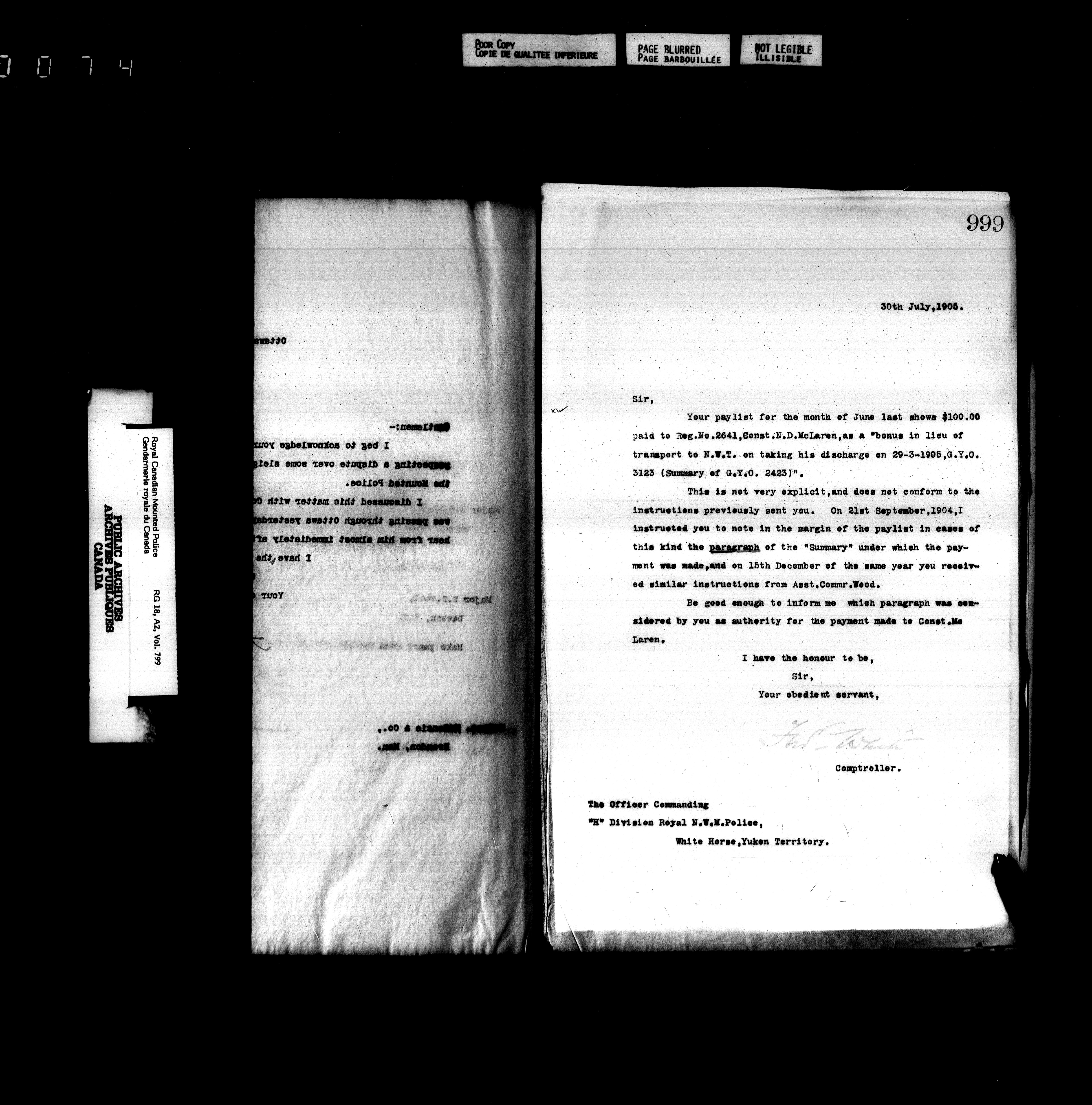 Royal Canadian Mounted Police, Office of the Comptroller : Letterbooks - 4971