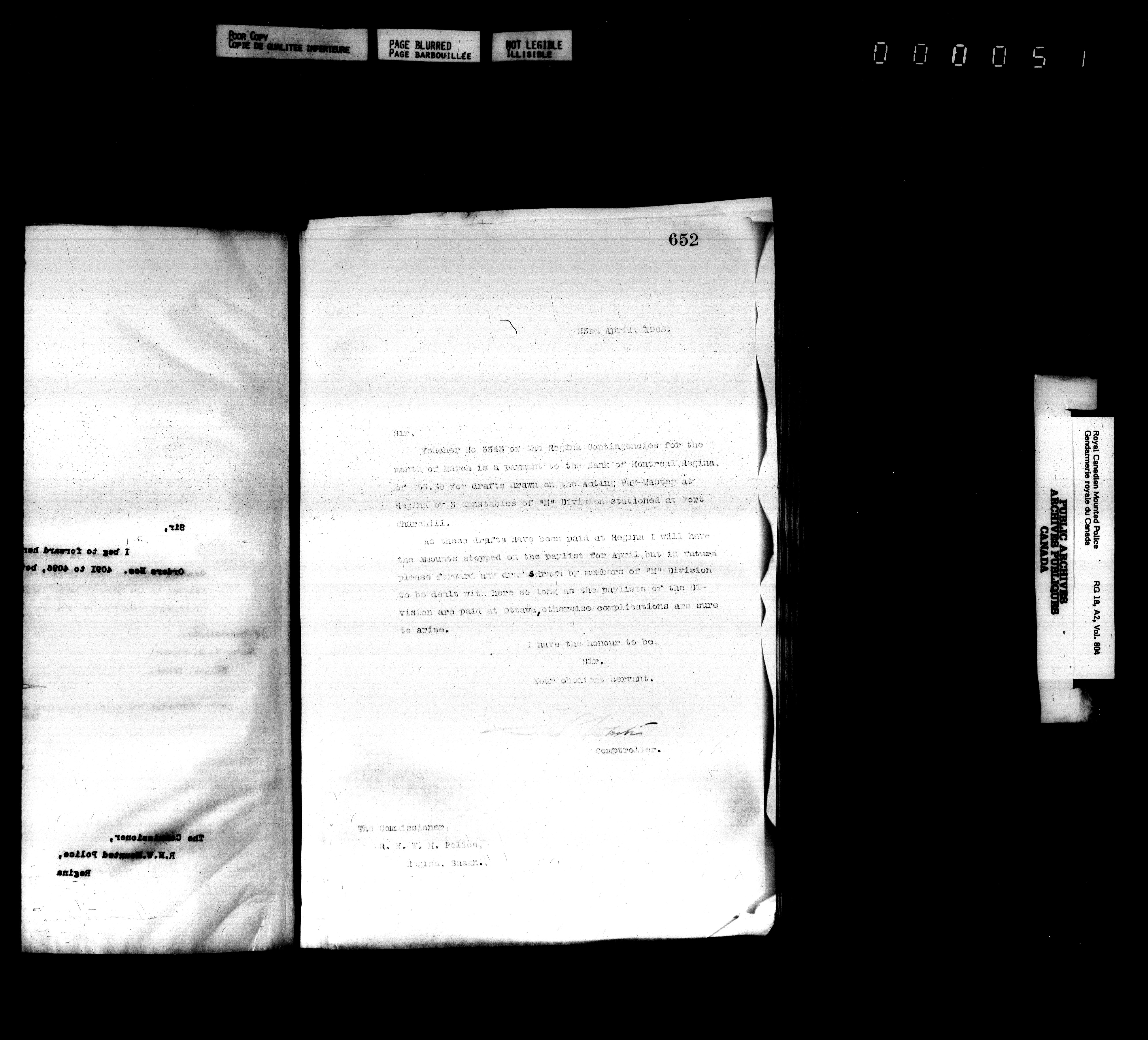 Royal Canadian Mounted Police, Office of the Comptroller : Letterbooks, 1883-1919 : T-4977