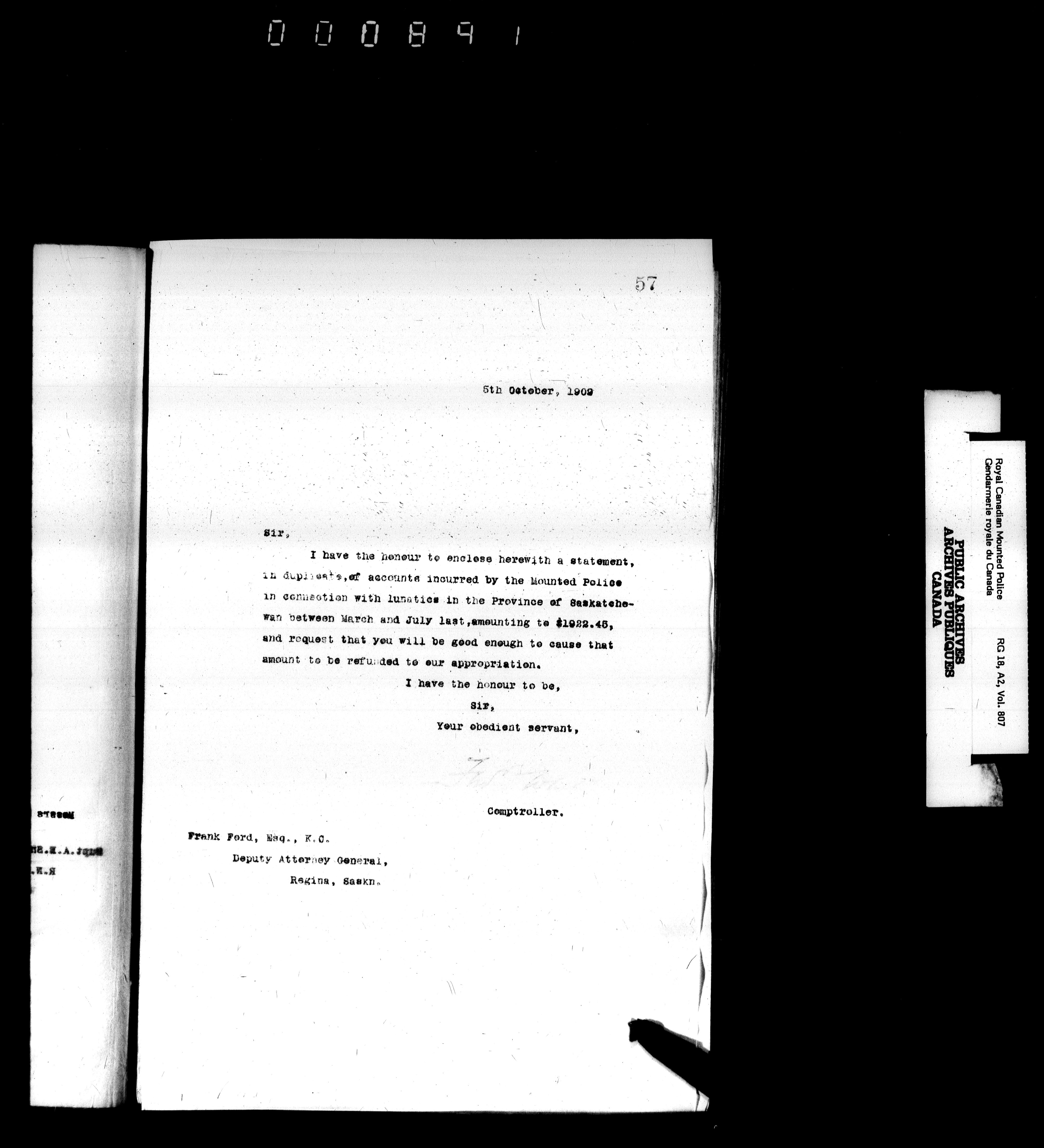 Royal Canadian Mounted Police, Office of the Comptroller : Letterbooks, 1883-1919 : T-4979