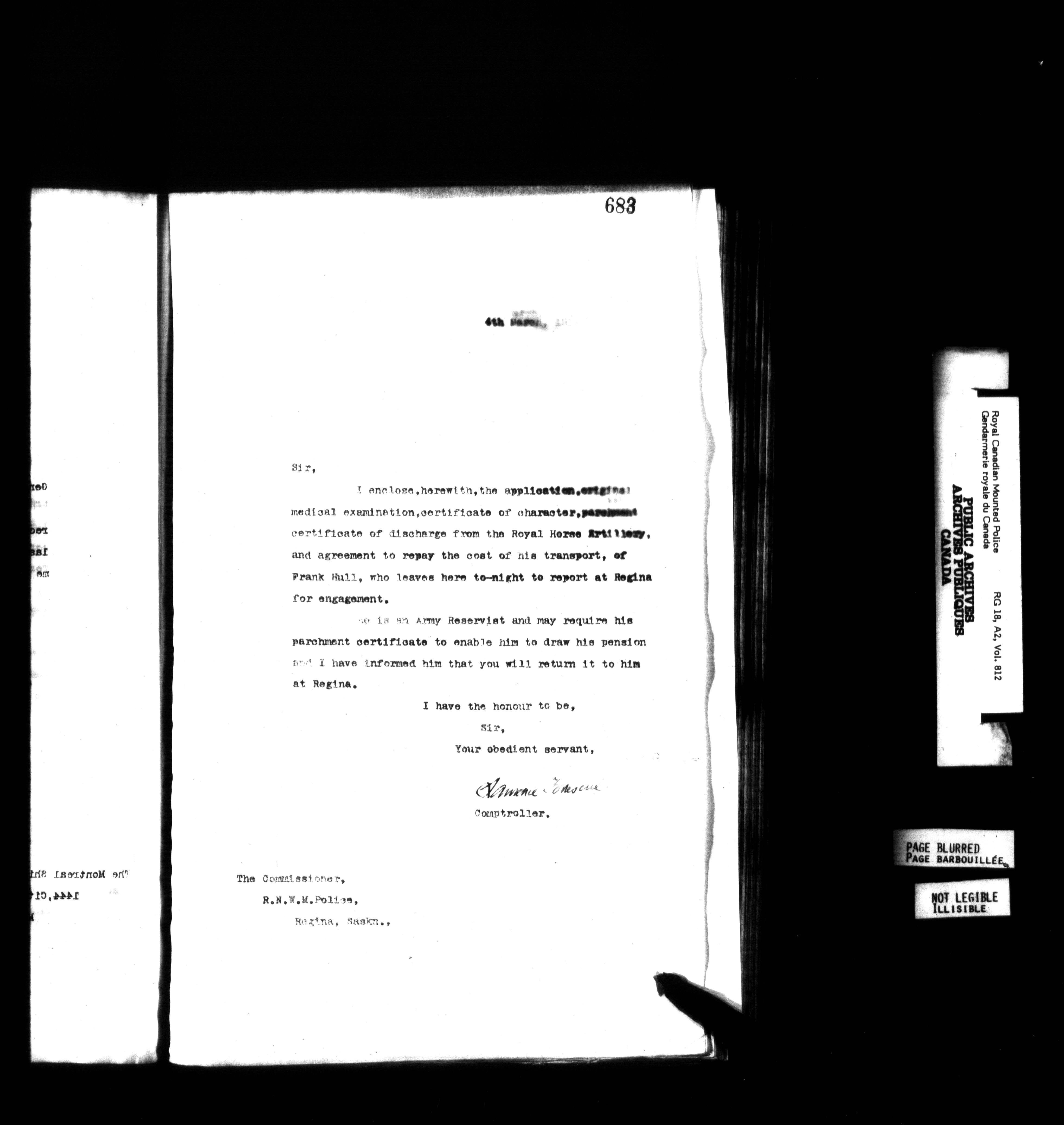 Royal Canadian Mounted Police, Office of the Comptroller : Letterbooks - 4985