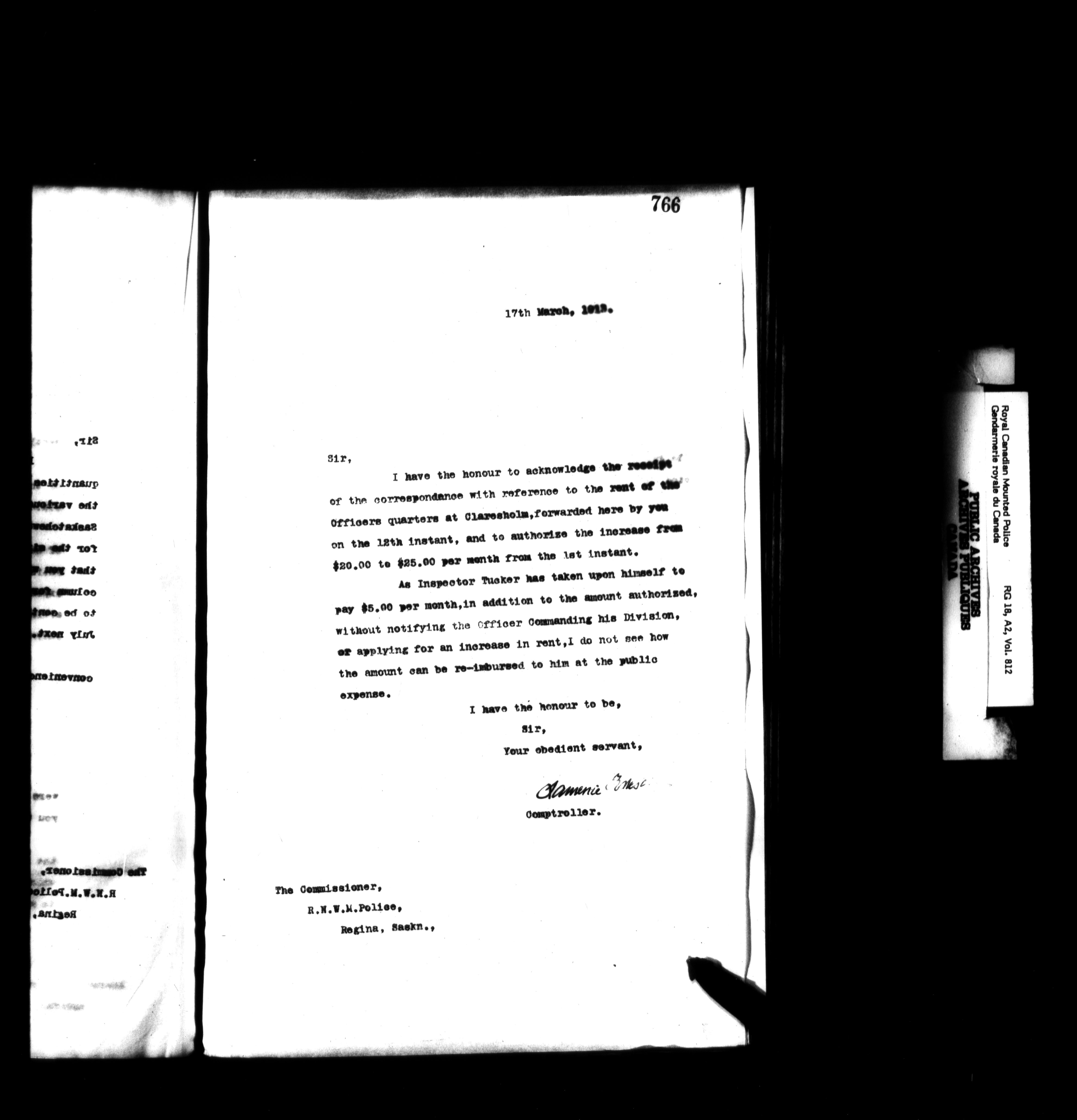 Royal Canadian Mounted Police, Office of the Comptroller : Letterbooks, 1883-1919 : T-4986