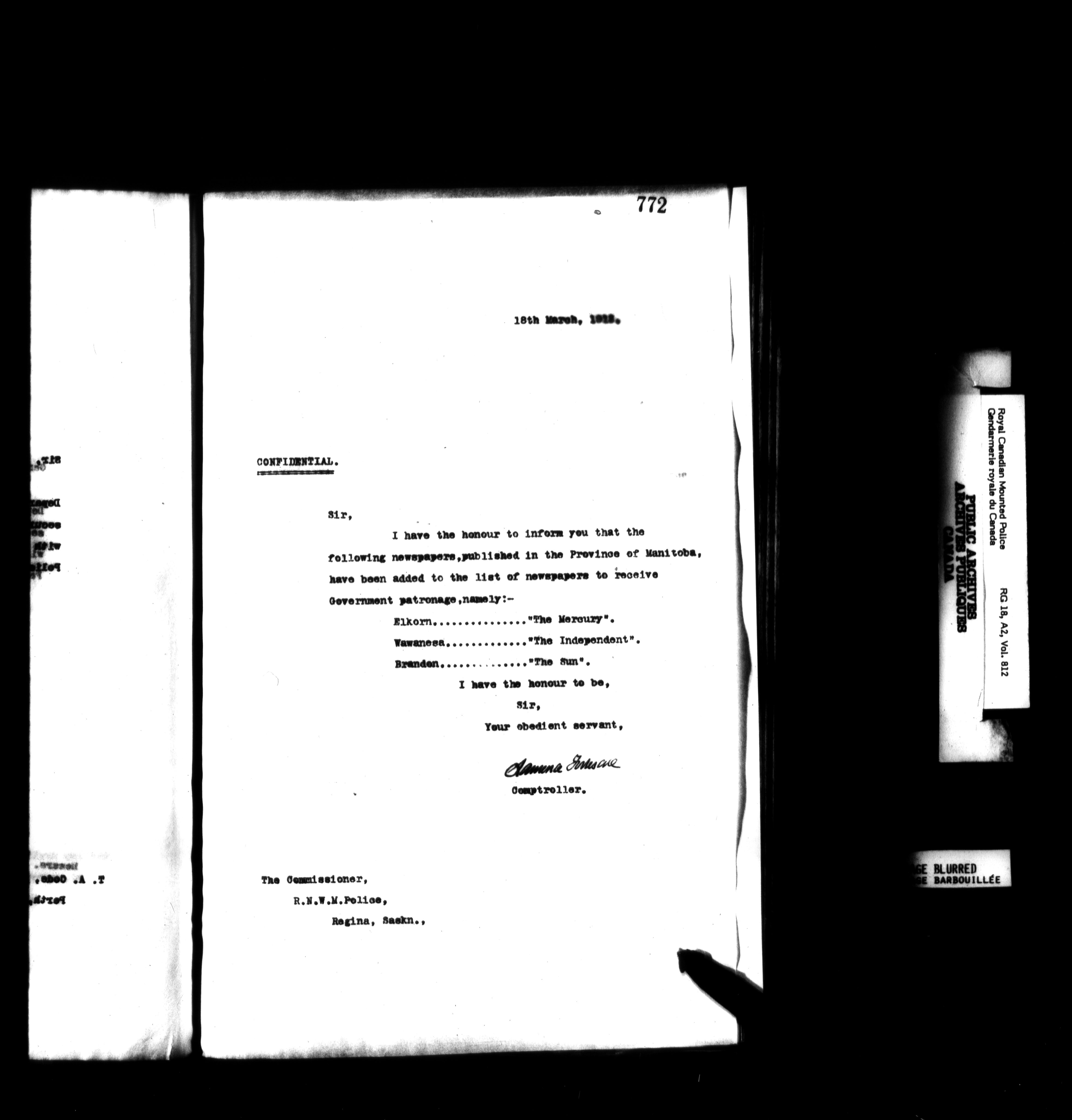 Royal Canadian Mounted Police, Office of the Comptroller : Letterbooks, 1883-1919 : T-4986