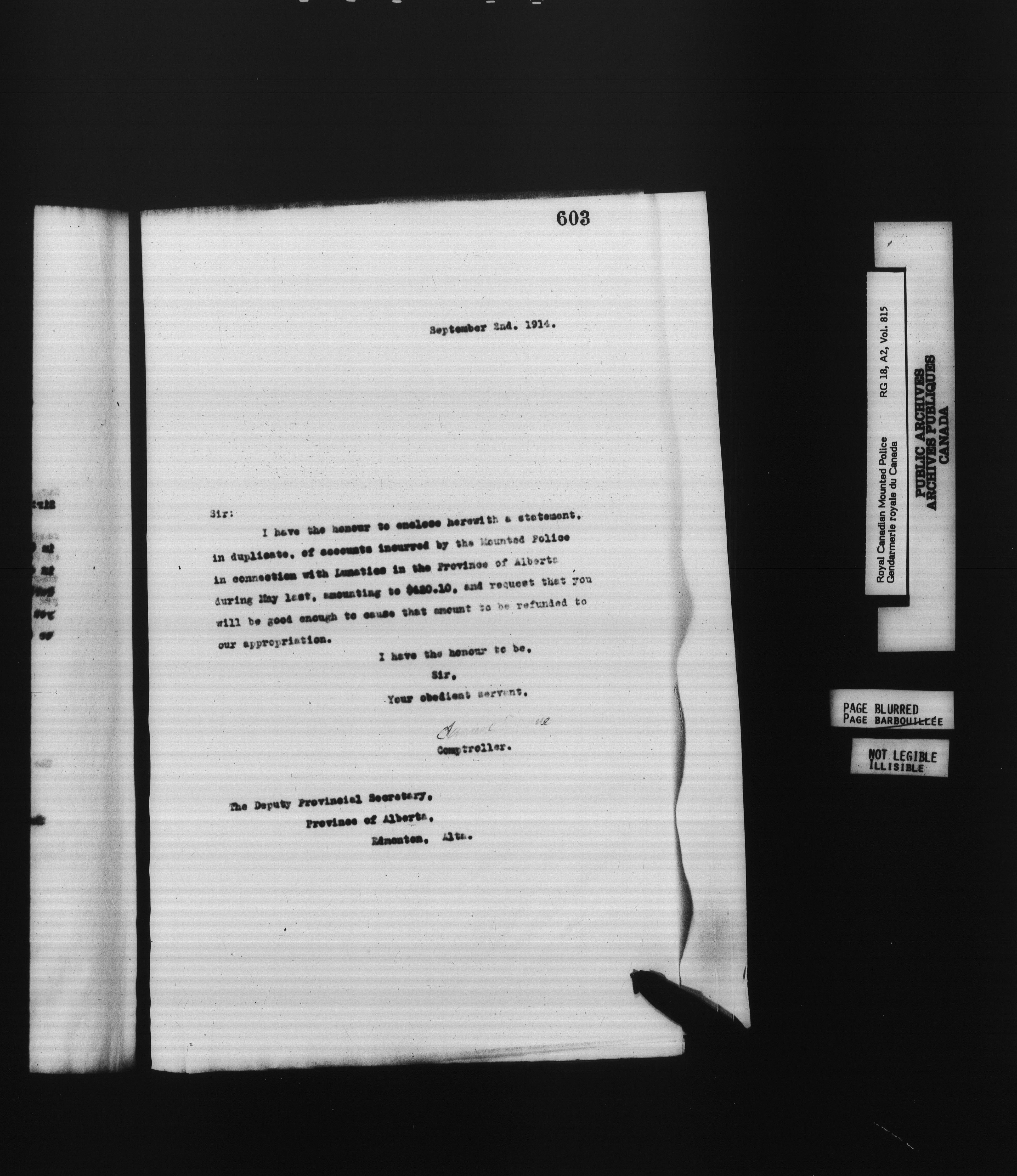 Royal Canadian Mounted Police, Office of the Comptroller : Letterbooks, 1883-1919 : T-4988