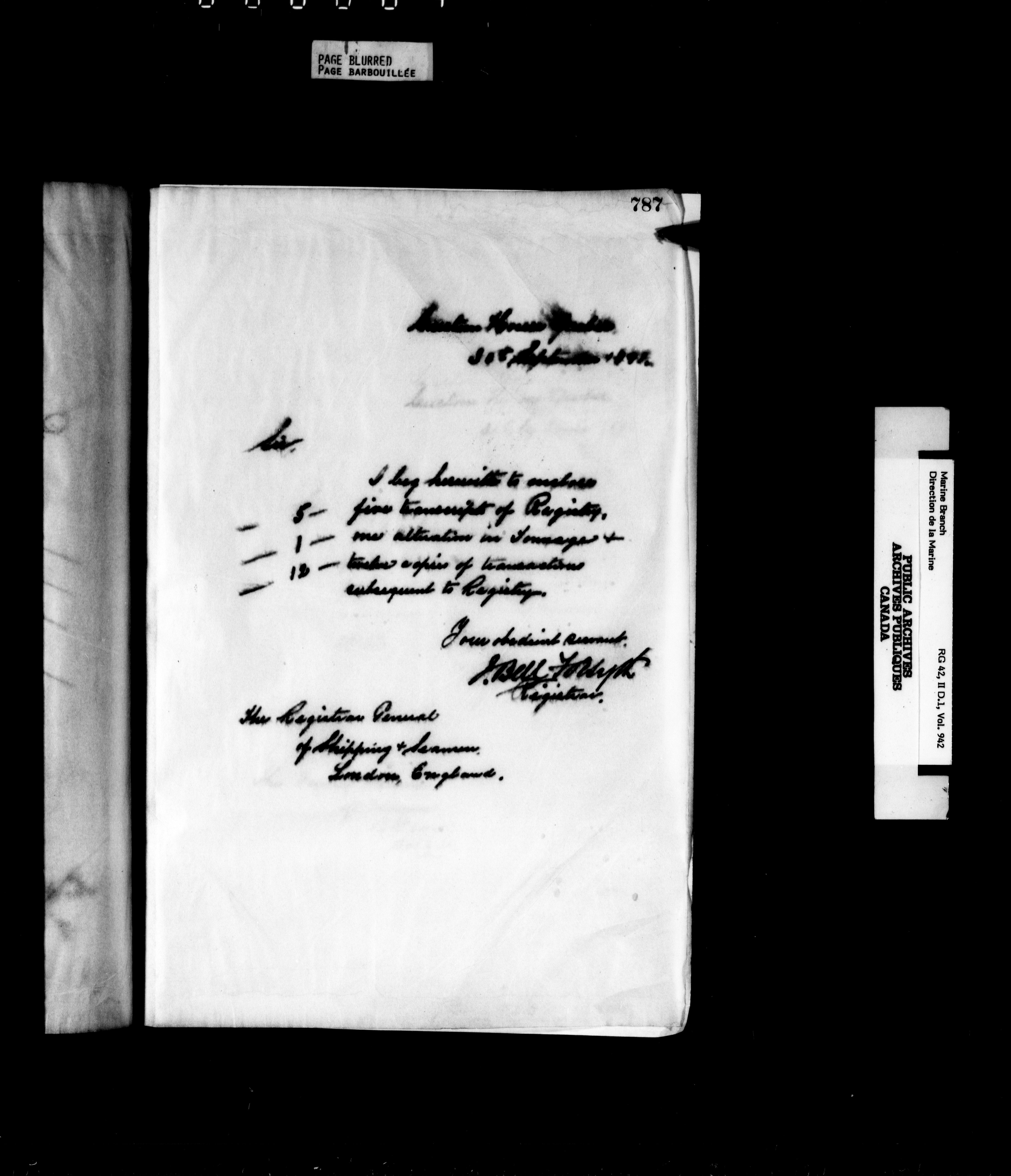 Quebec City [Québec] Registrar of Shipping, 1787-1965 - 4990