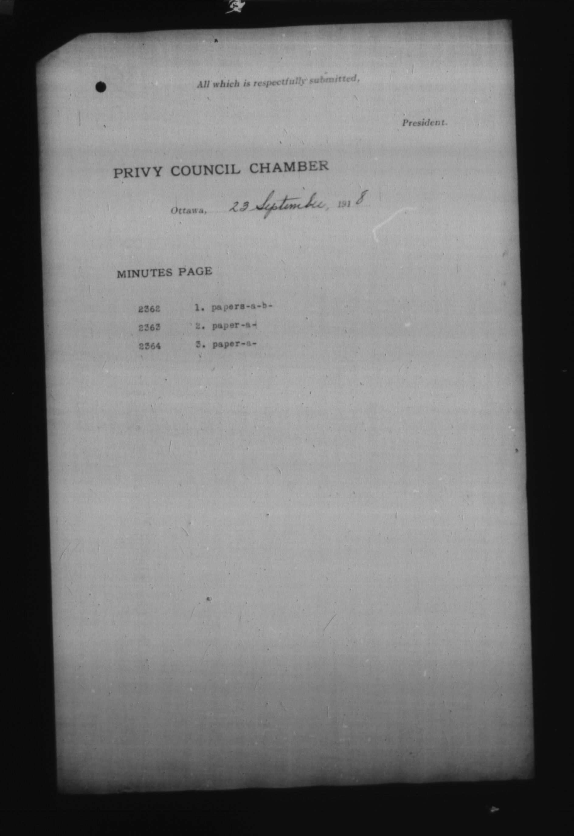 Privy Council Office, Orders in Council : Minutes, annexes and reports