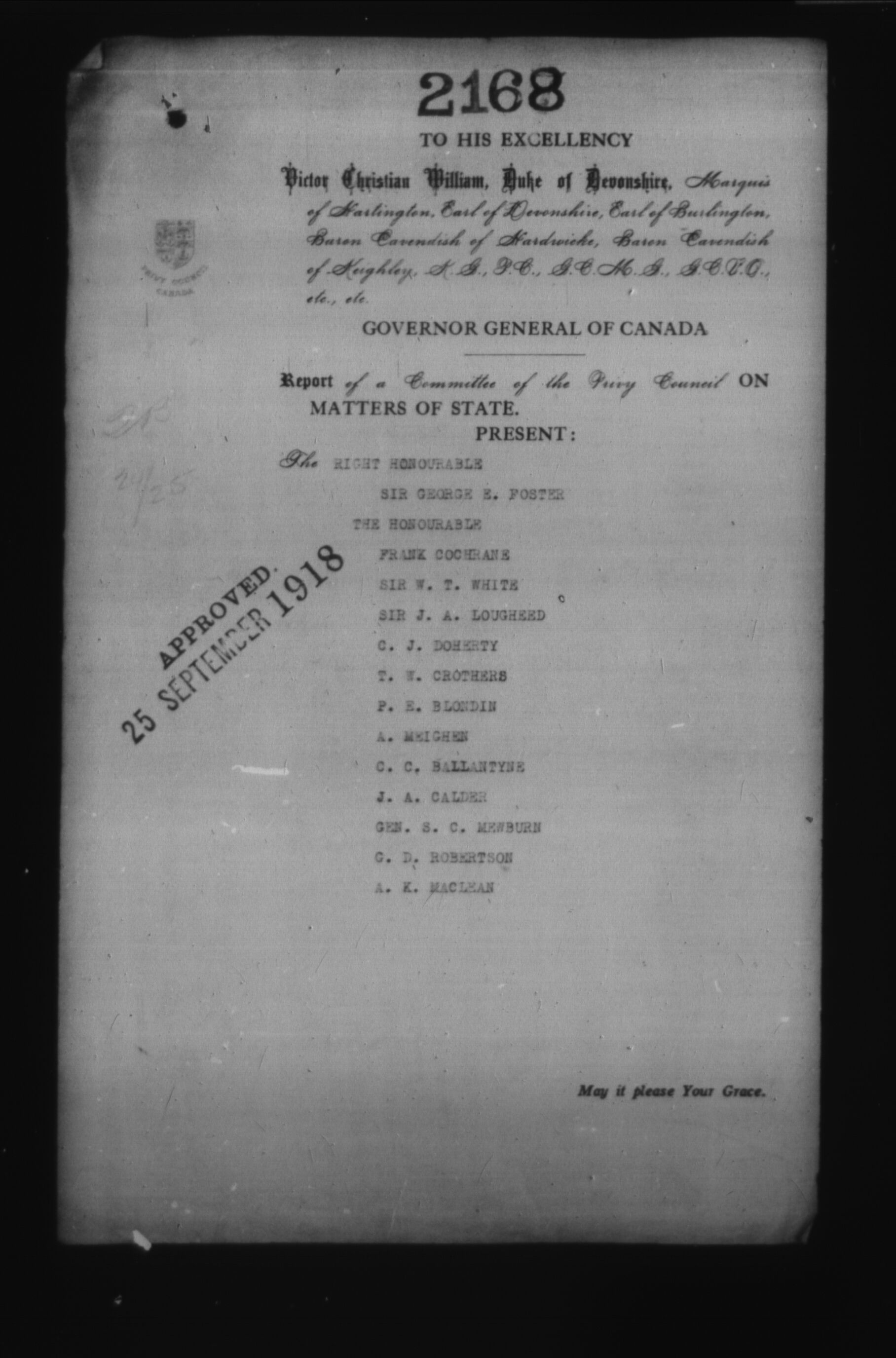 Privy Council Office, Orders in Council : Minutes, annexes and reports : T-5036