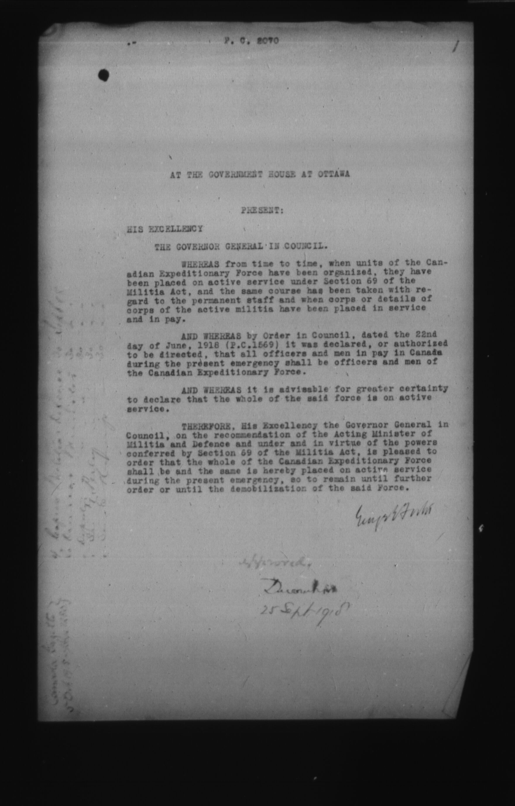 Privy Council Office, Orders in Council : Minutes, annexes and reports
