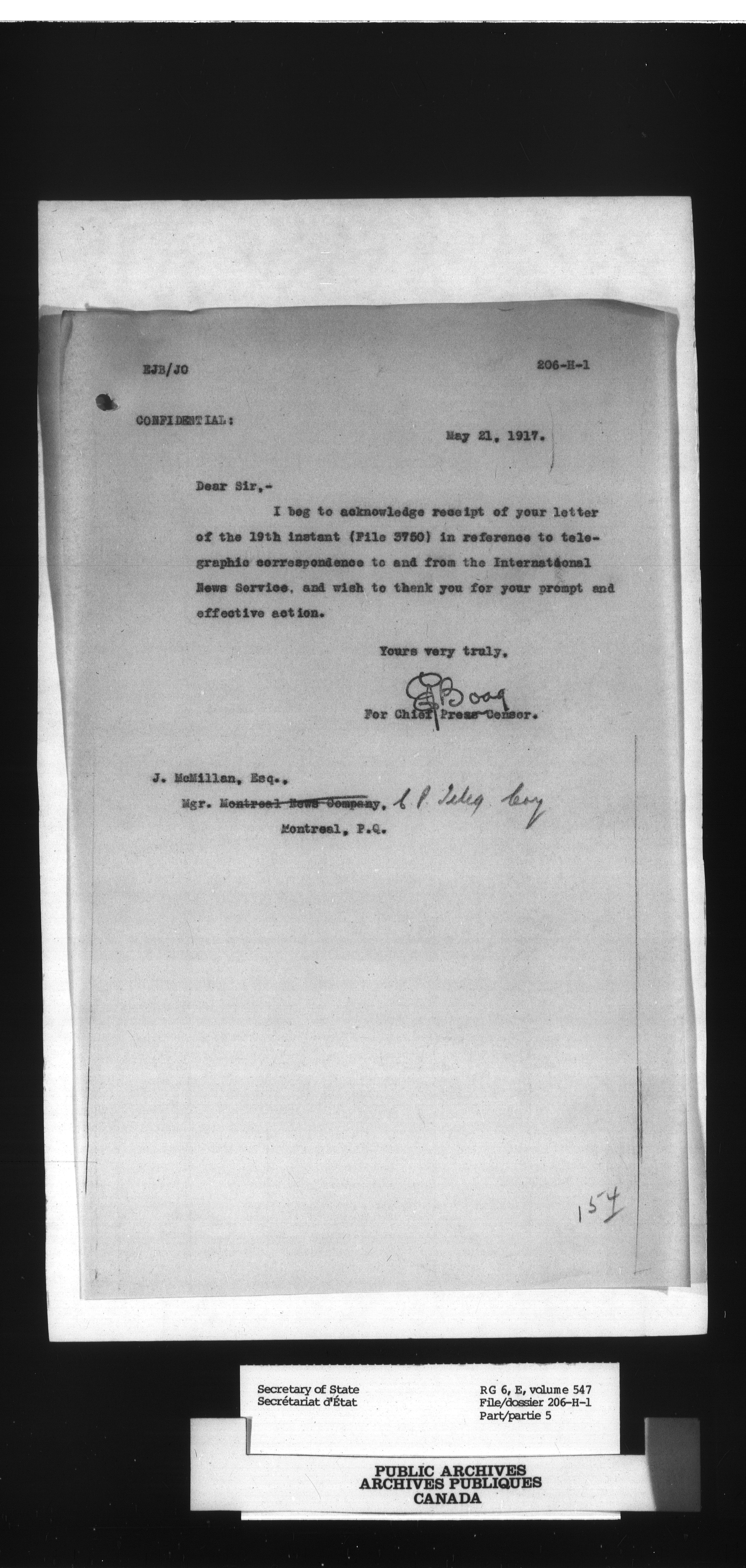 Secretary of State : Chief Press Censor : T-51