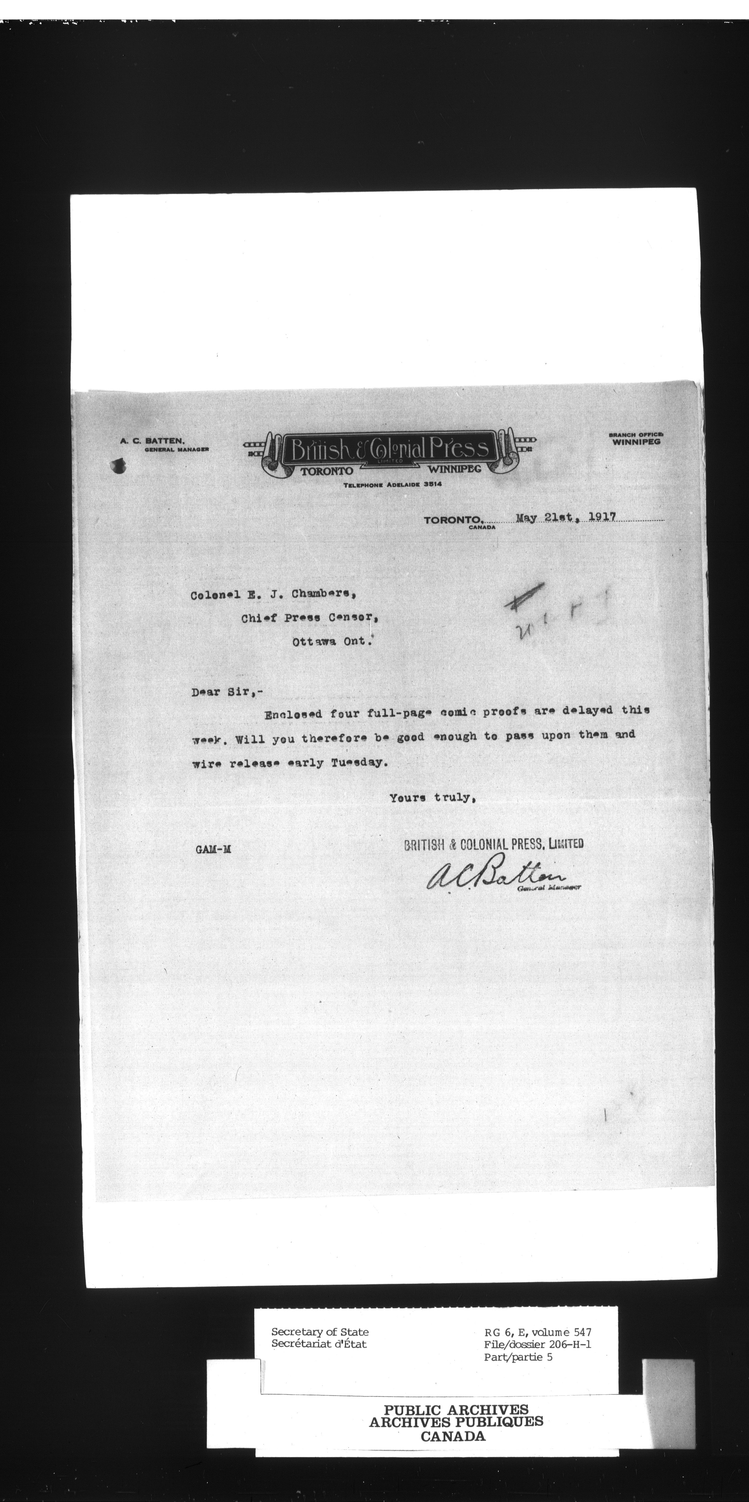 Secretary of State : Chief Press Censor : T-51