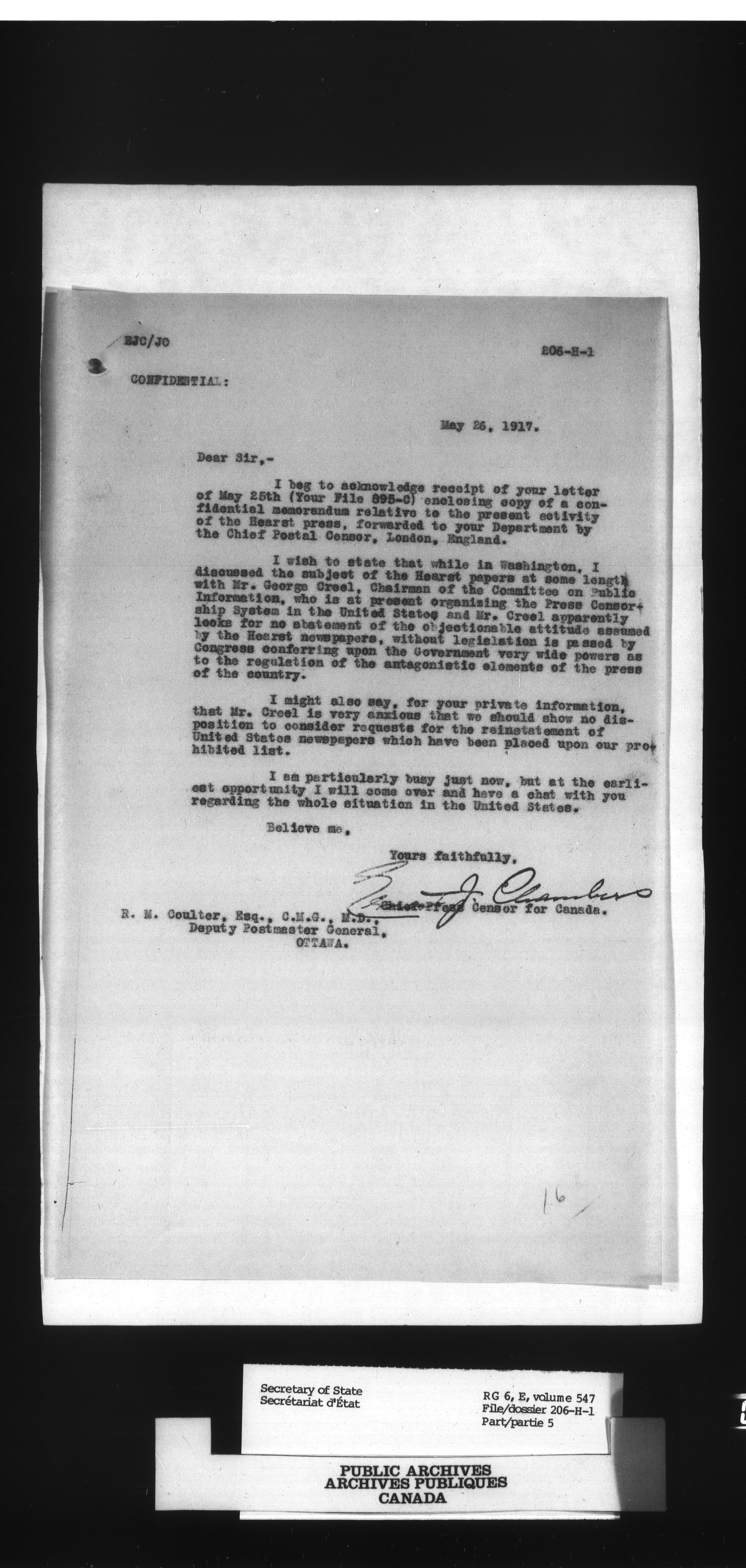 Secretary of State : Chief Press Censor : T-51