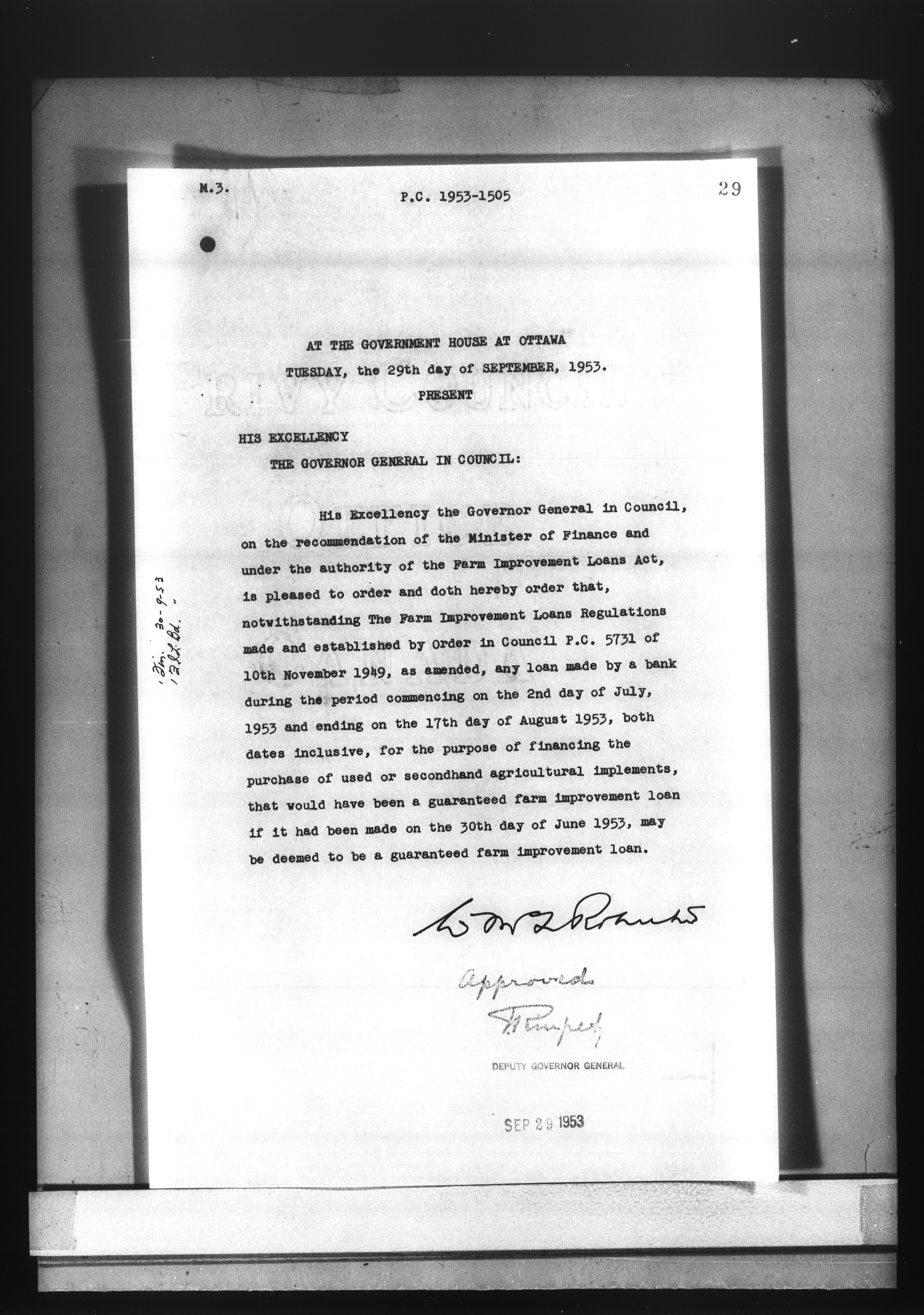 Privy Council Office, Orders in Council : Minutes, annexes and reports - 5255