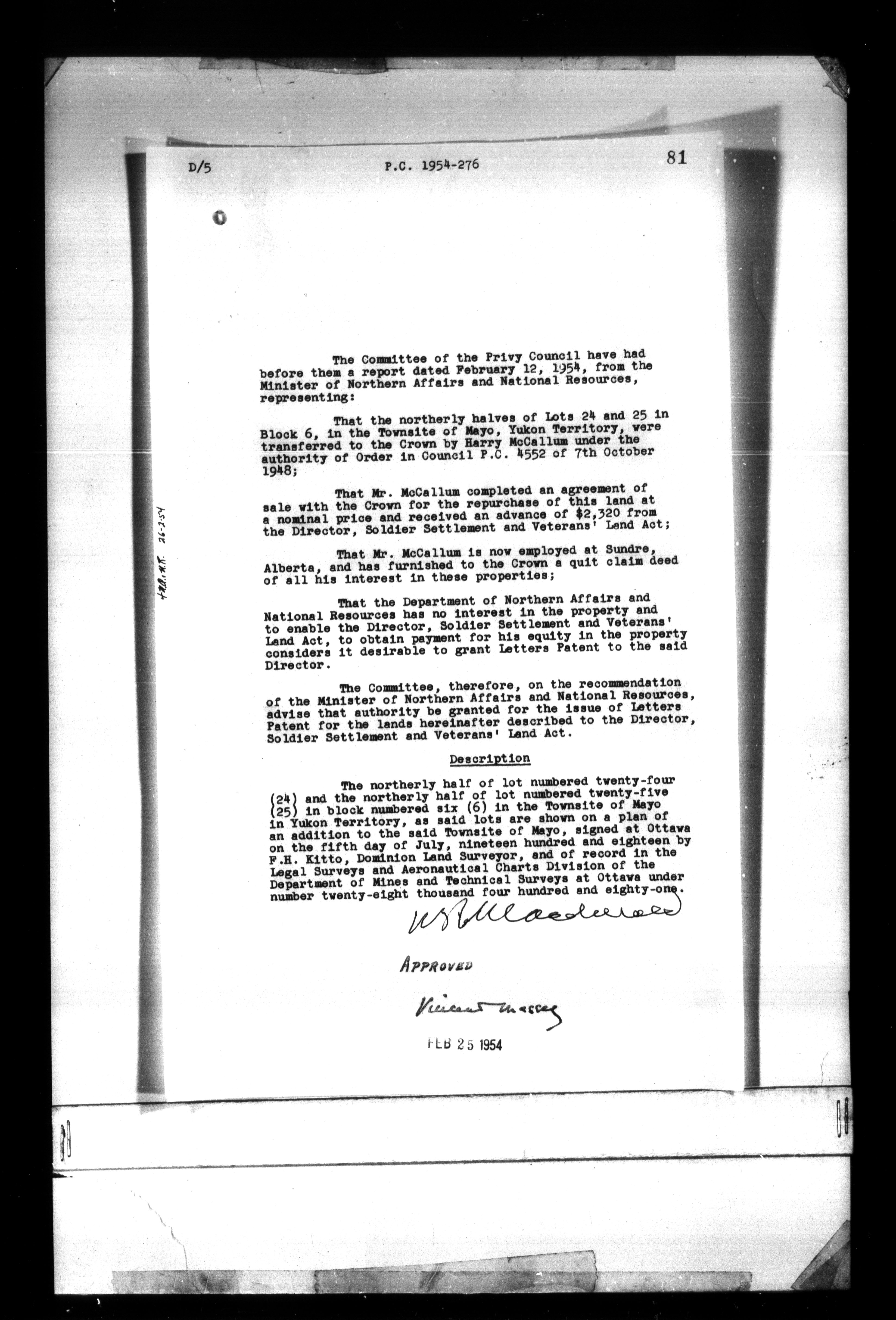 Privy Council Office, Orders in Council : Minutes, annexes and reports - 5260