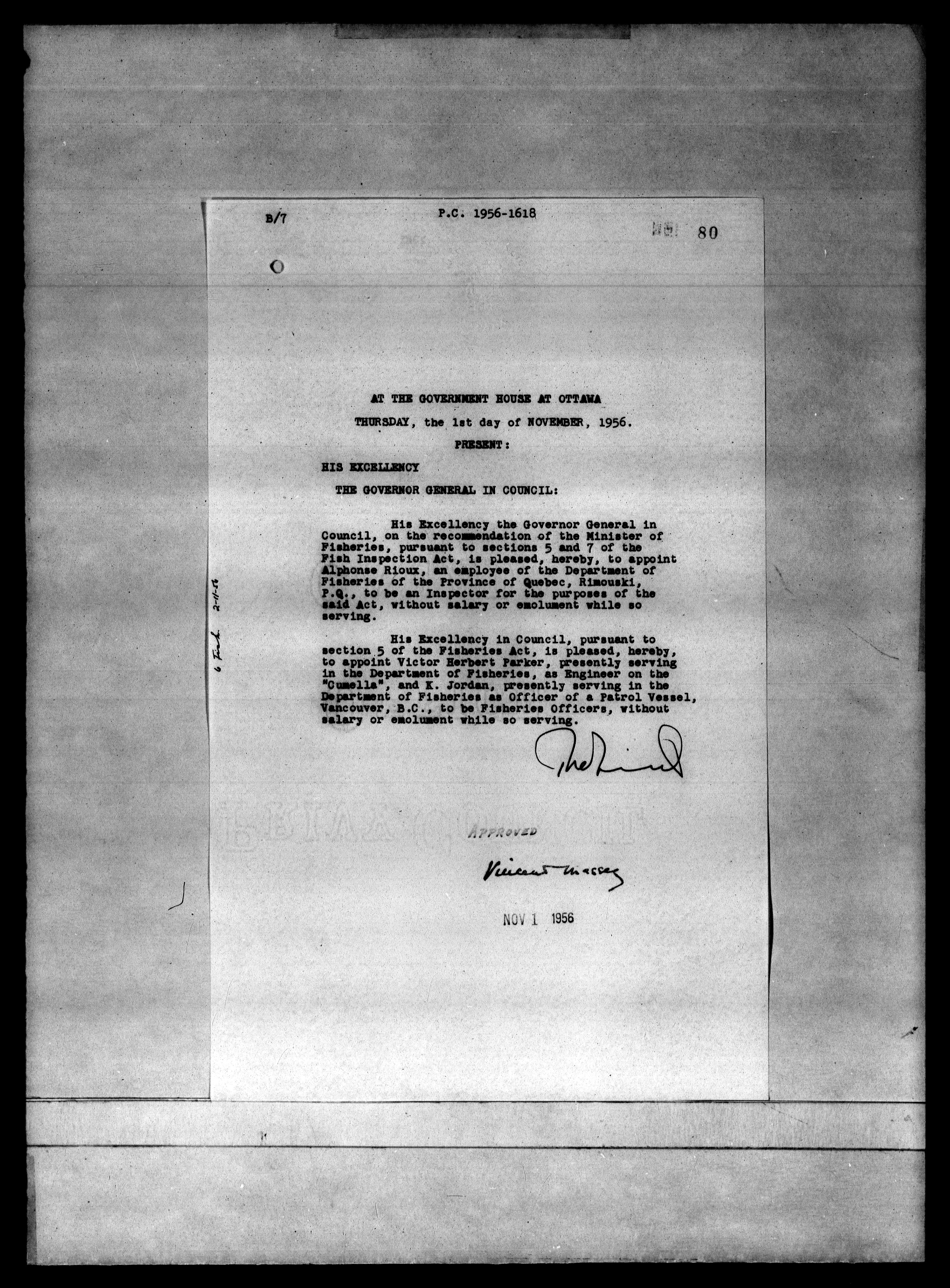 Privy Council Office, Orders in Council : Minutes, annexes and reports - 5291