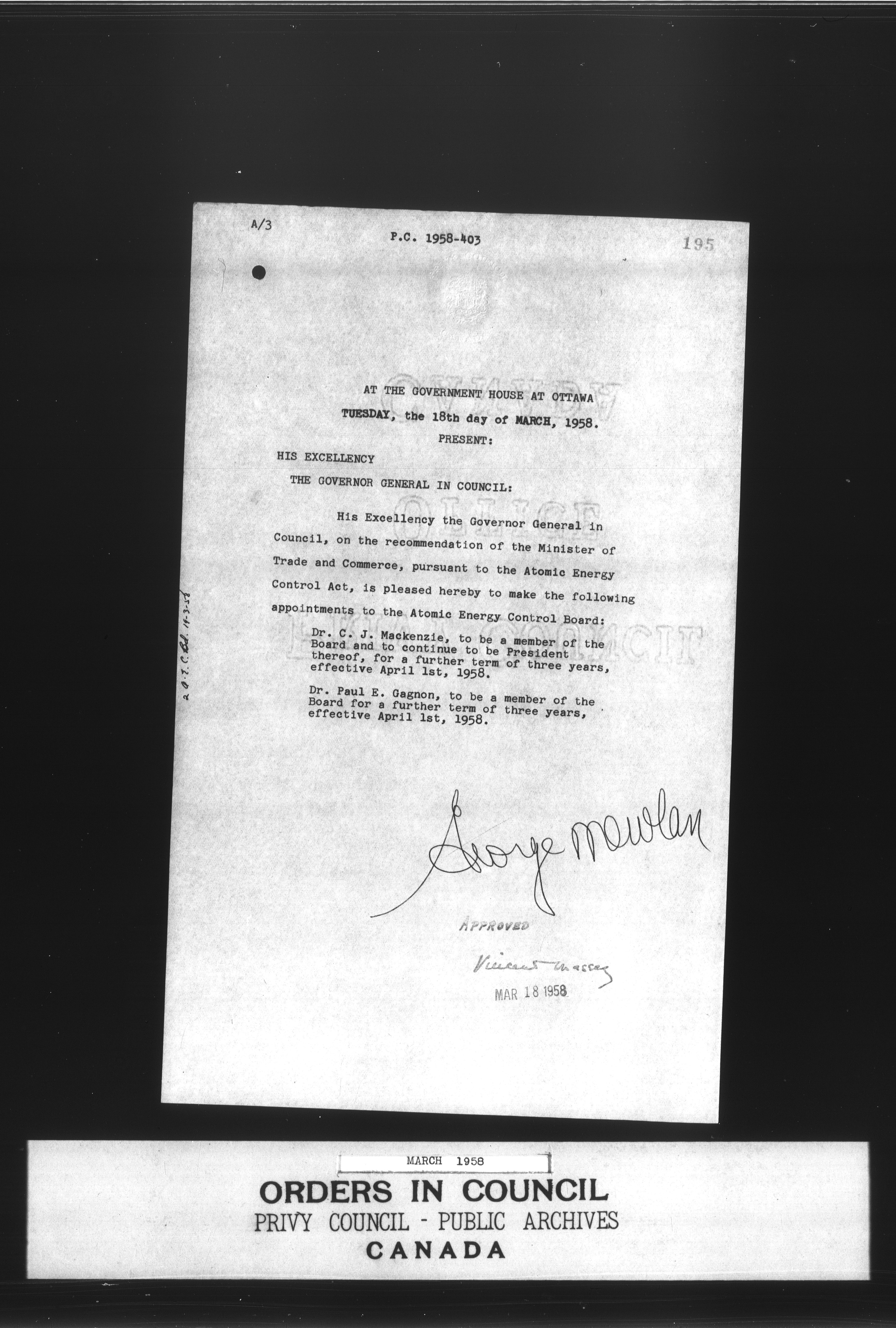 Privy Council Office, Orders in Council : Minutes, annexes and reports - 5306