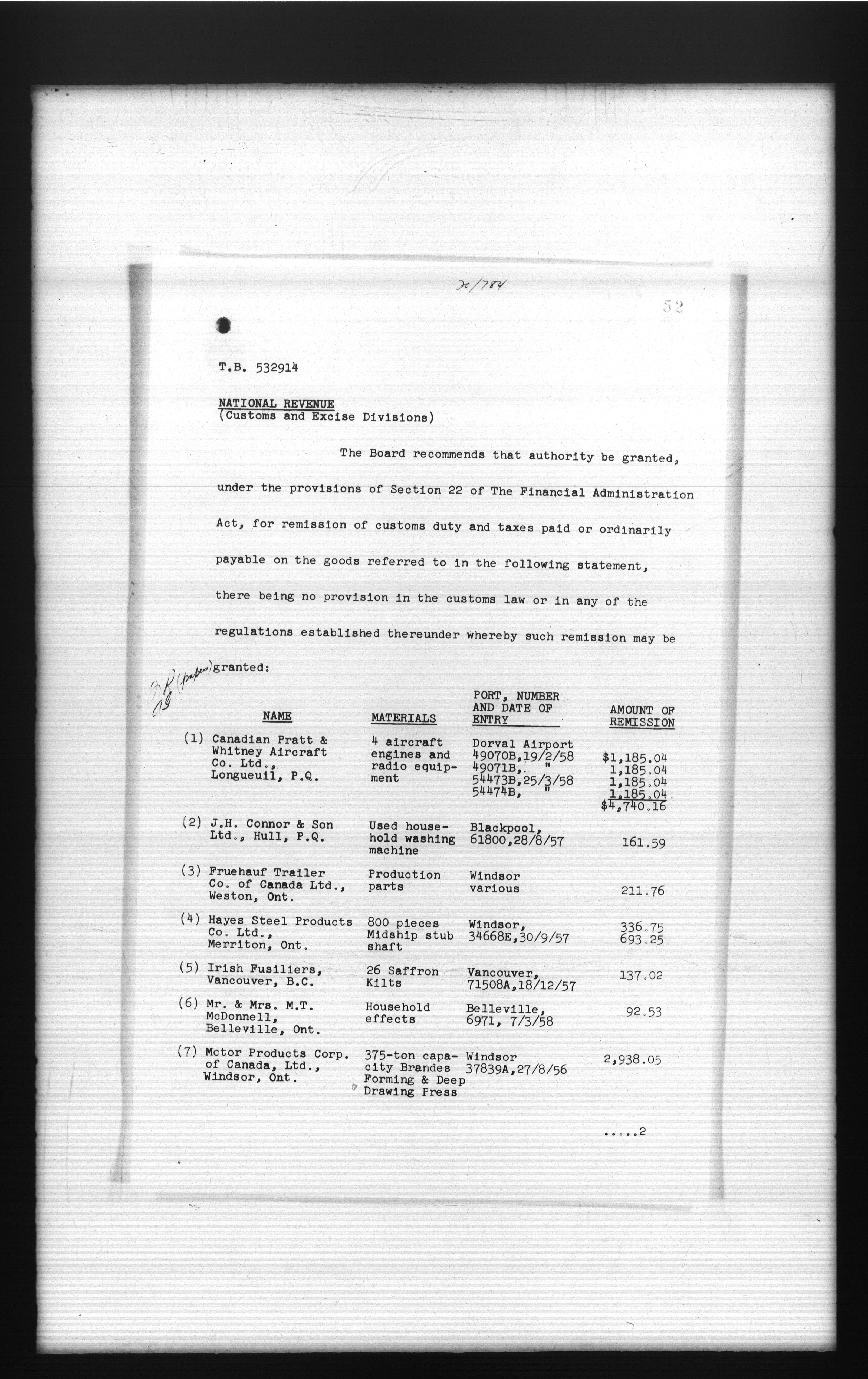 Privy Council Office, Orders in Council : Minutes, annexes and reports : T-5309